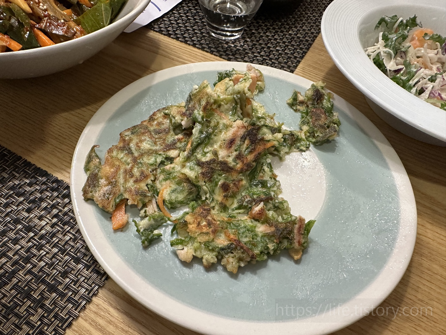 기본 샐러드, 우동, 전 등이 나온다.