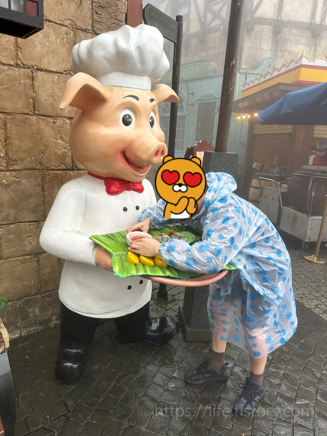 돼지들 사이에서 따라 해보기, 시간이 있었으면 식당에서 먹어봐도 재밌었을 것 같다.