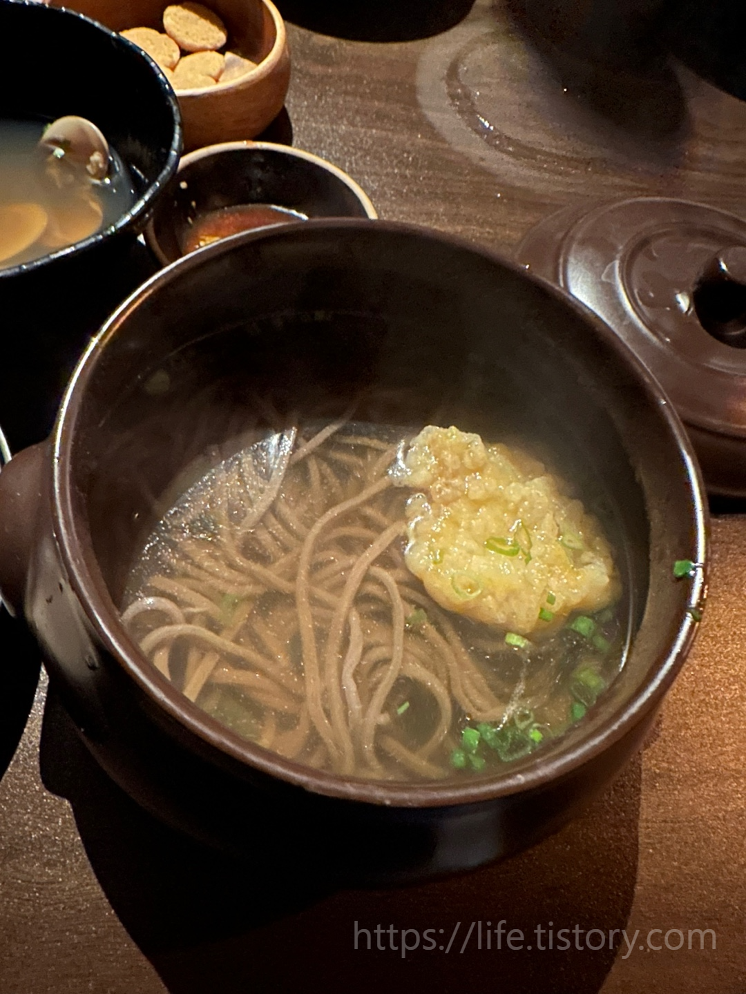 메밀면을 이용한 면요리, 따뜻하고 튀김이 고소했다. 생선튀김이었는데 기억이 잘 안 난다.
