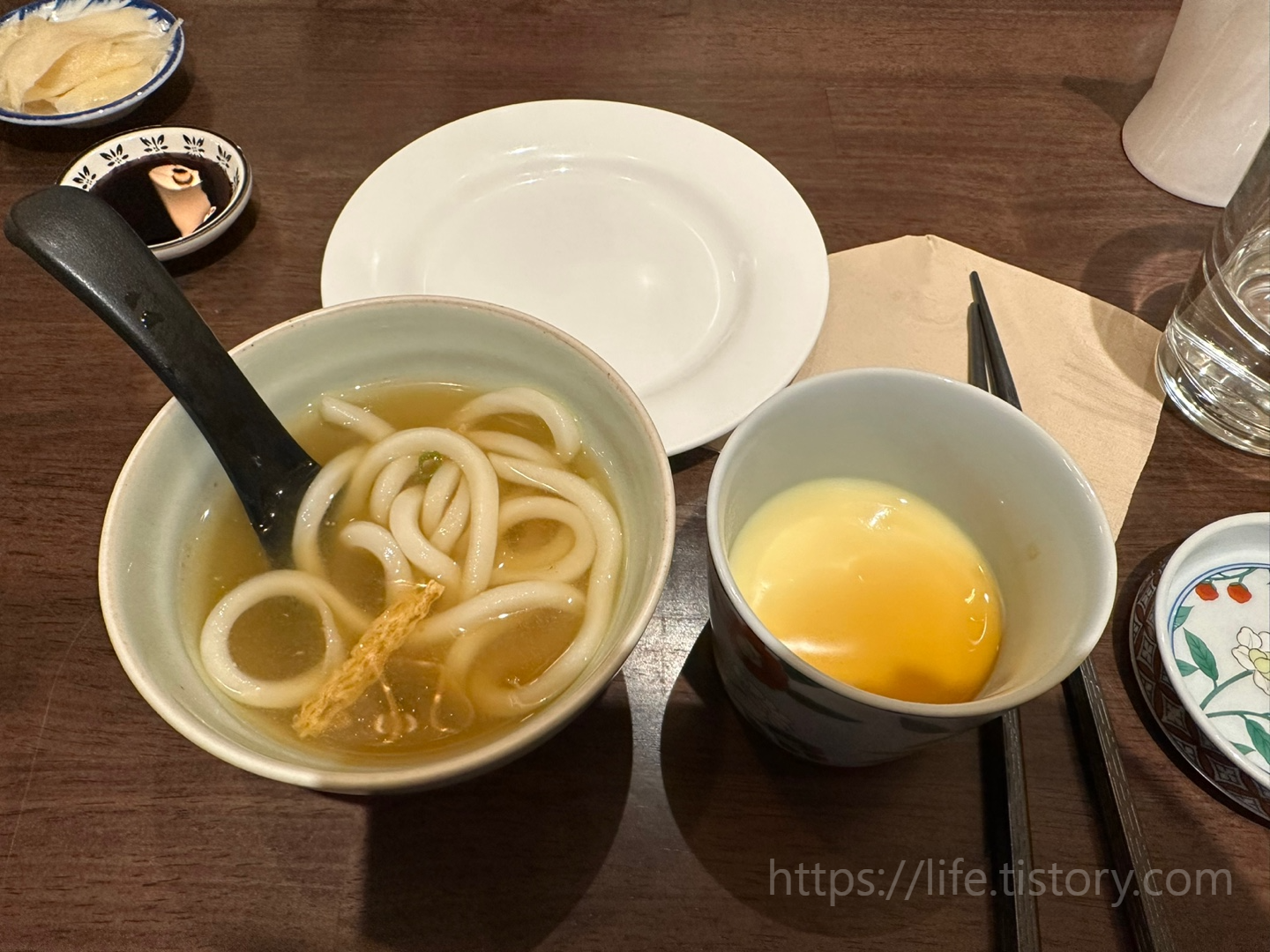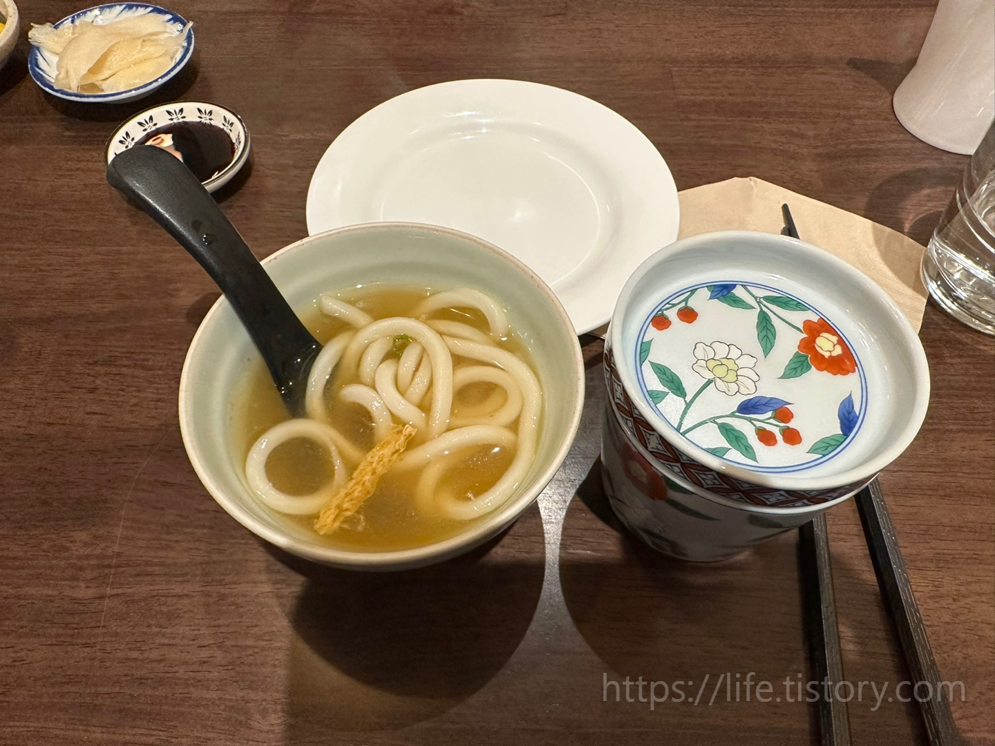 기본으로 우동과 계란푸딩이 나오는데 저 계란푸딩이 정말 정말 맛있다.