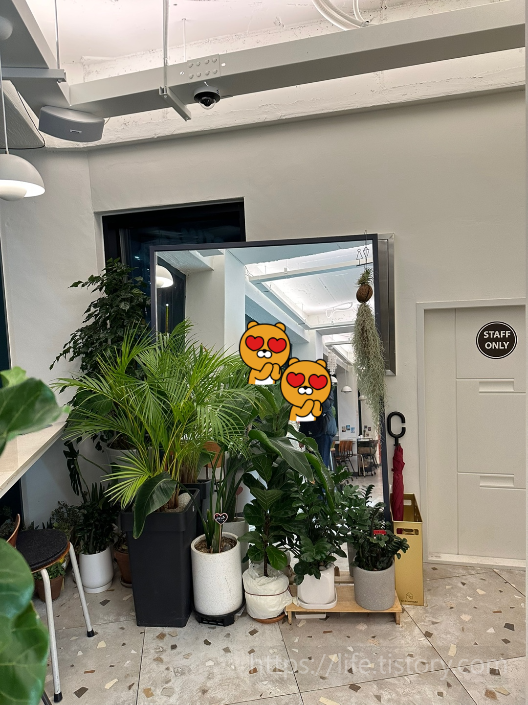 입구 쪽에 있는 또 다른 포토존? 식물이 많이 있고 사장님이 다음날 판매할 티라미수들을 만들고 계셨다.