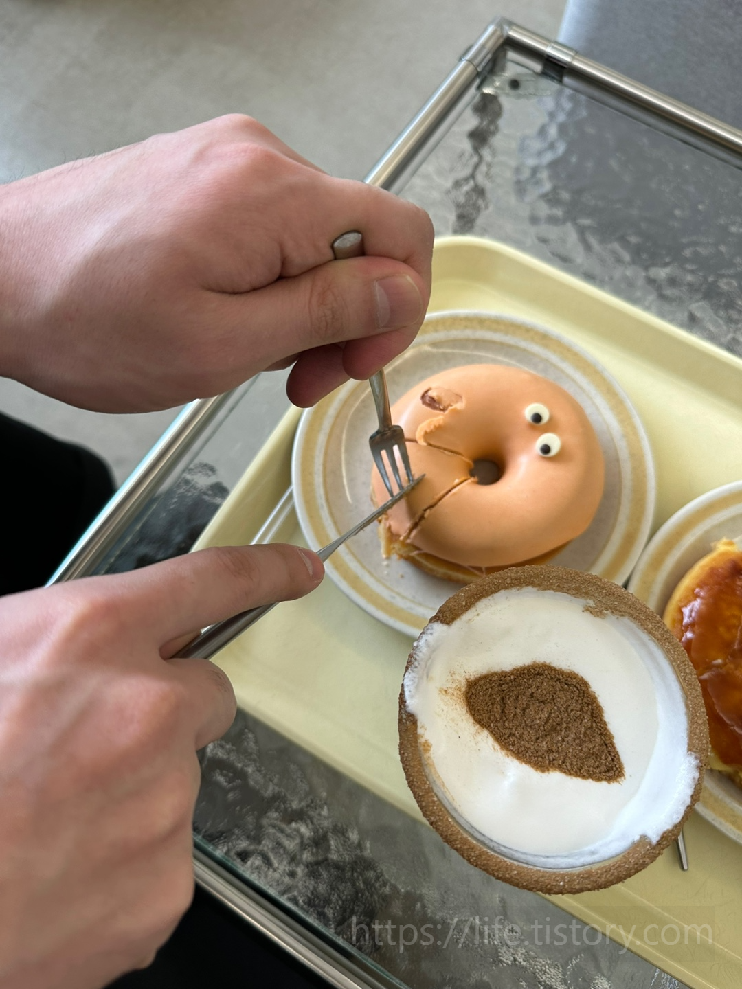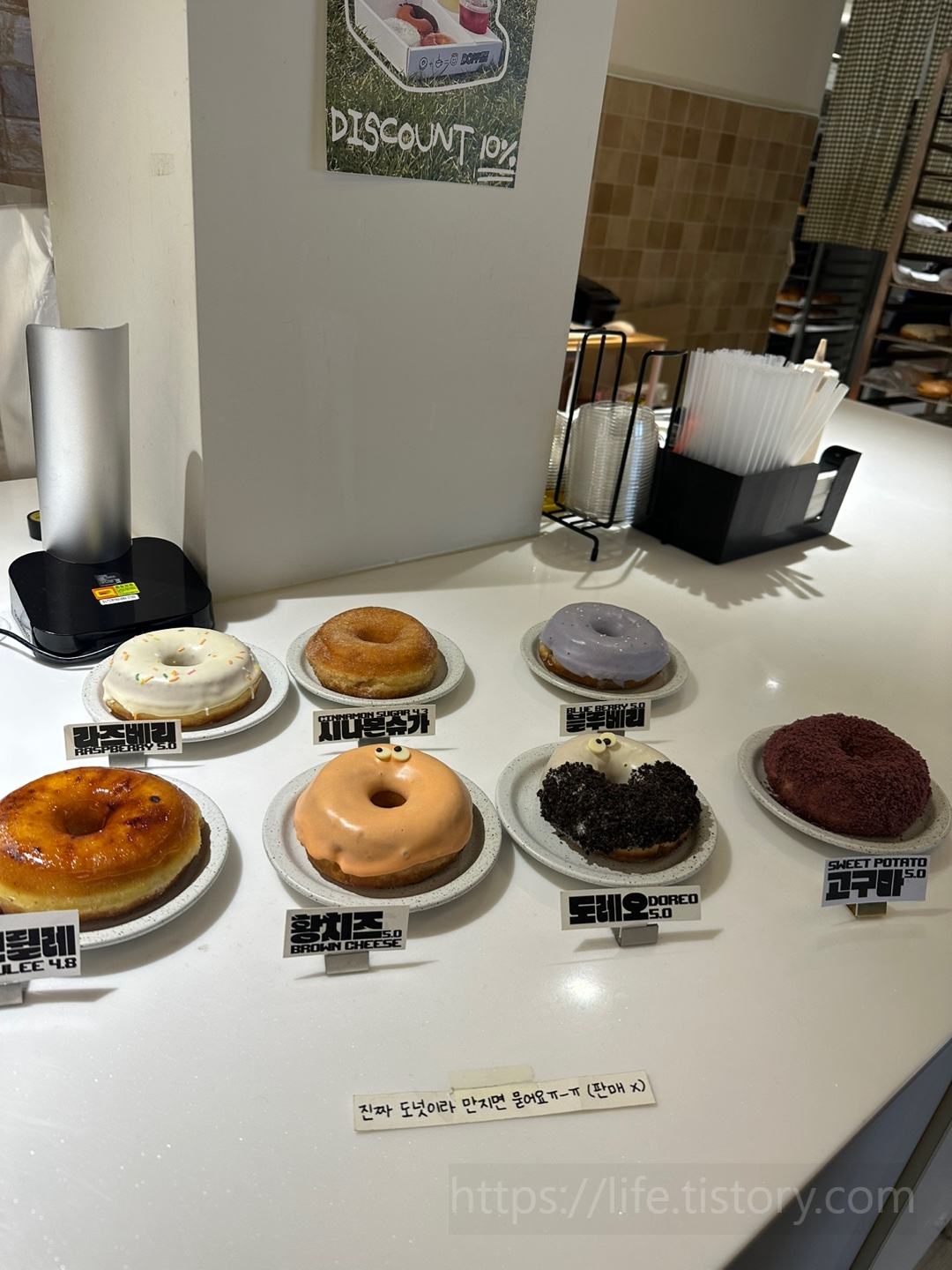 가기 전에 사진 봤을 때는 다른 종류의 도넛이 있었는데 시즌 마다 나오는 도넛이 바뀌는 것 같다.