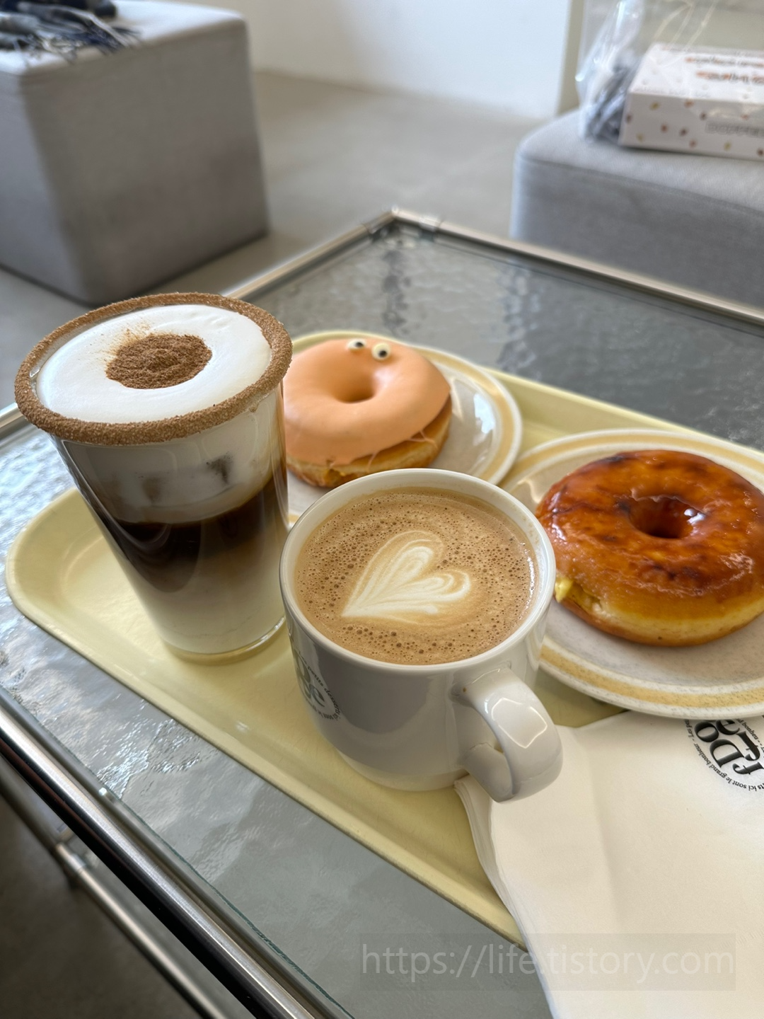 남편 커피도 도피커피에서만 파는 커피였던 것 같은데 이름이 기억이 안 난다. 커피도 맛있었지만 도넛이 정말 맛있었다.