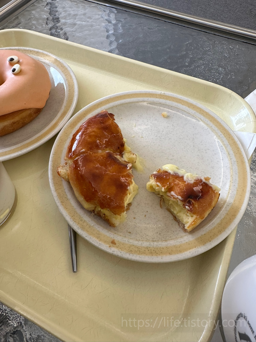 브륄레처럼 위에를 딱 깨는 맛이 있다. 도넛 속에 크림이 가득해서 따뜻한 아메리카노와 함께 먹으면 정말 끝내주게 맛있었다.