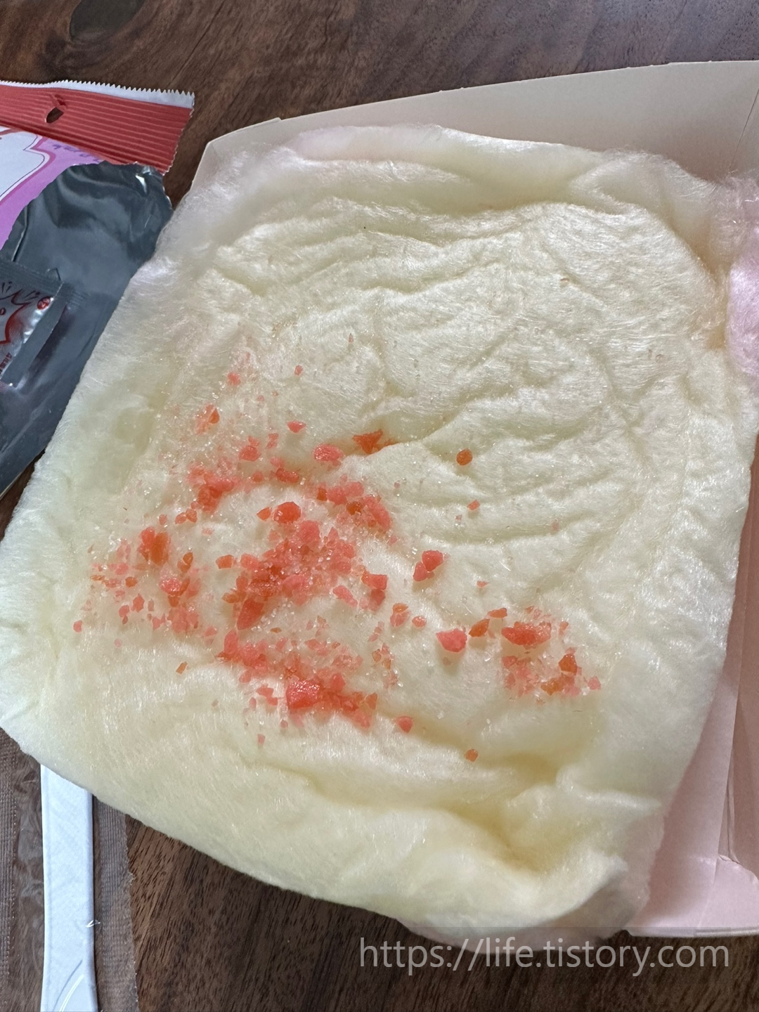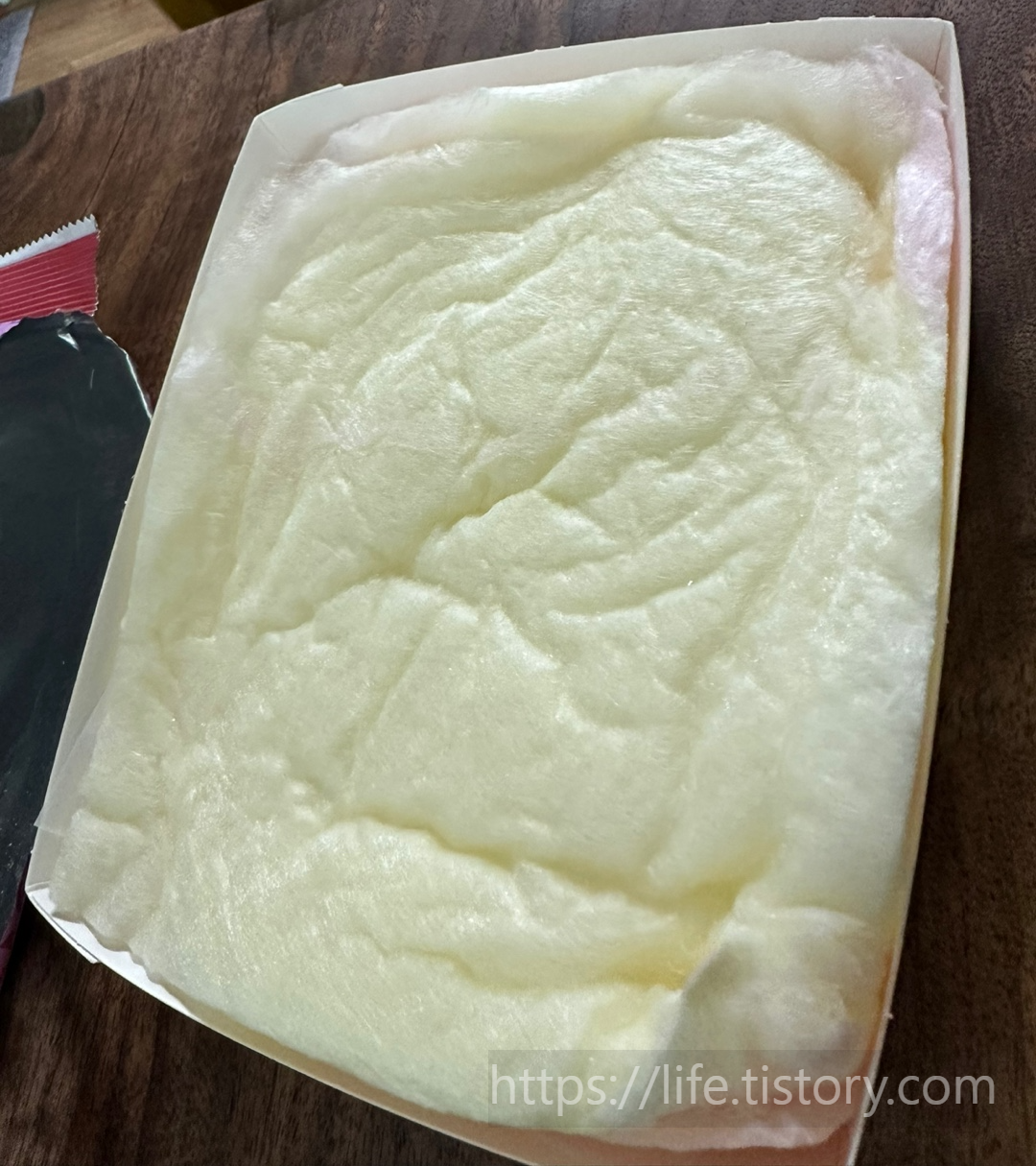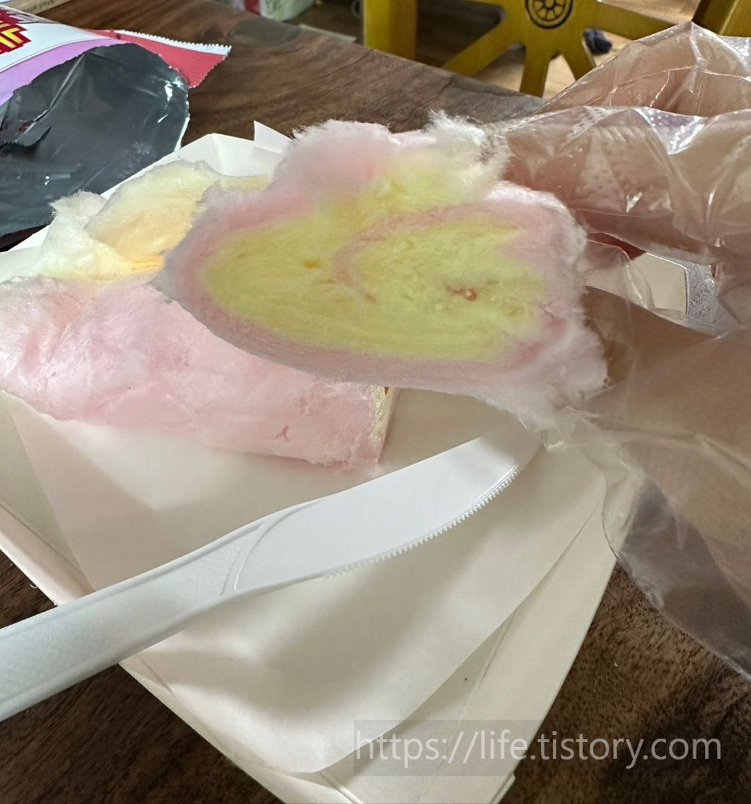 포장지를 까면 달달한 냄새와 함께 솜사탕이 모습을 보인다.