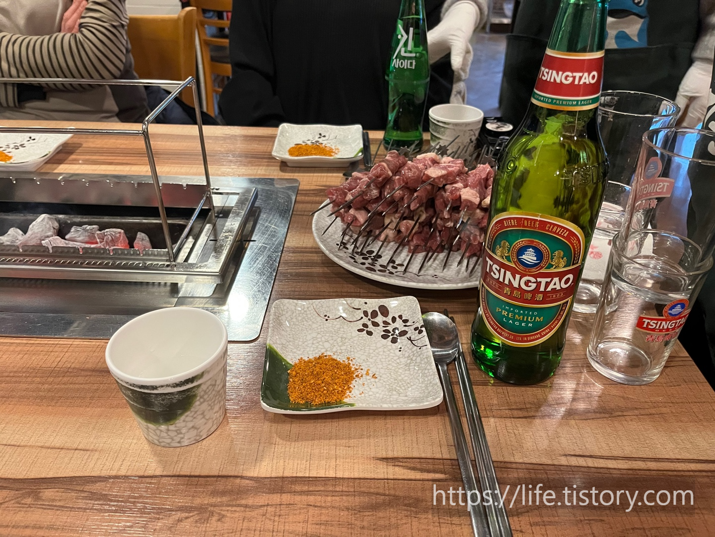 양꼬치를 먹을 땐 칭다오와 먹어줘야지, 확실히 잘 어울린다.