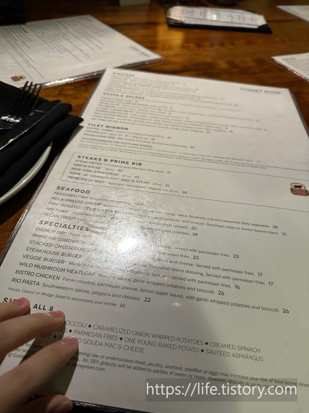 STONEY RIVER Steakhouse and Grill that we went to in the US