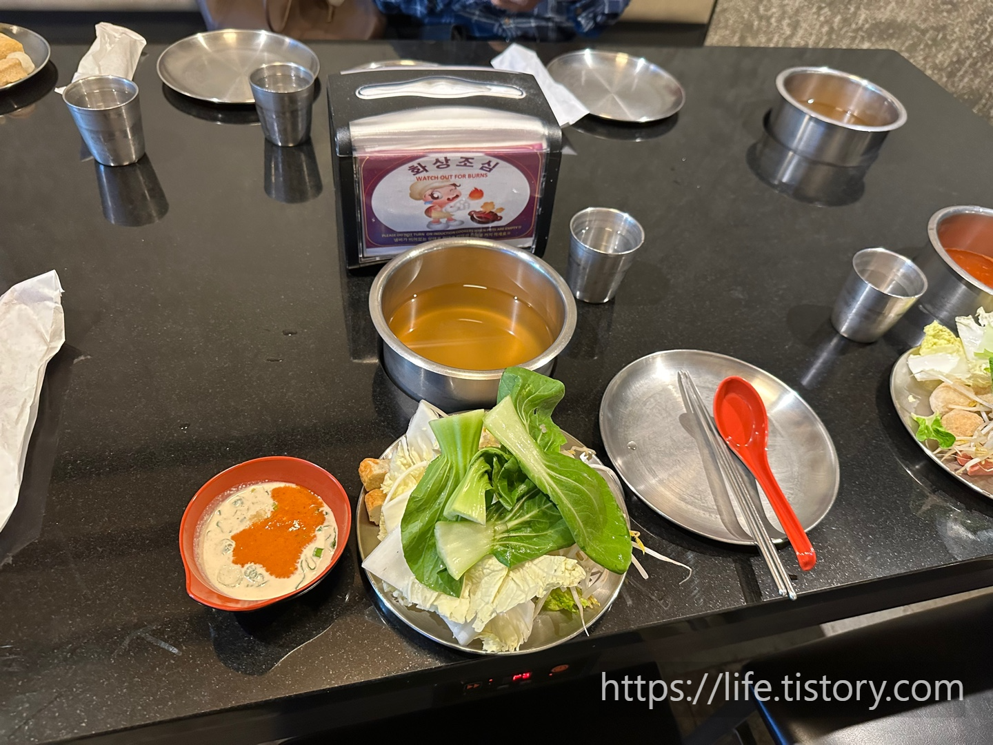 국물은 다시랑 매운 다시 마라 그 외 다른 것들도 있었다.