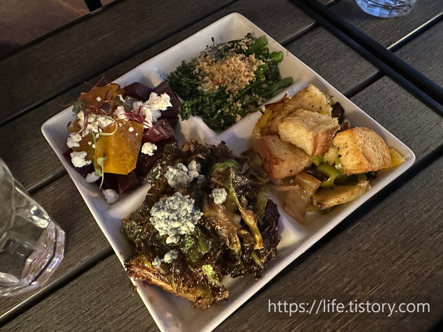 식사에 있던 배지테이블 플레이스 계절에 맞춰서 음식이 나오는데 네 가지 종류를 맛볼 수 있다.