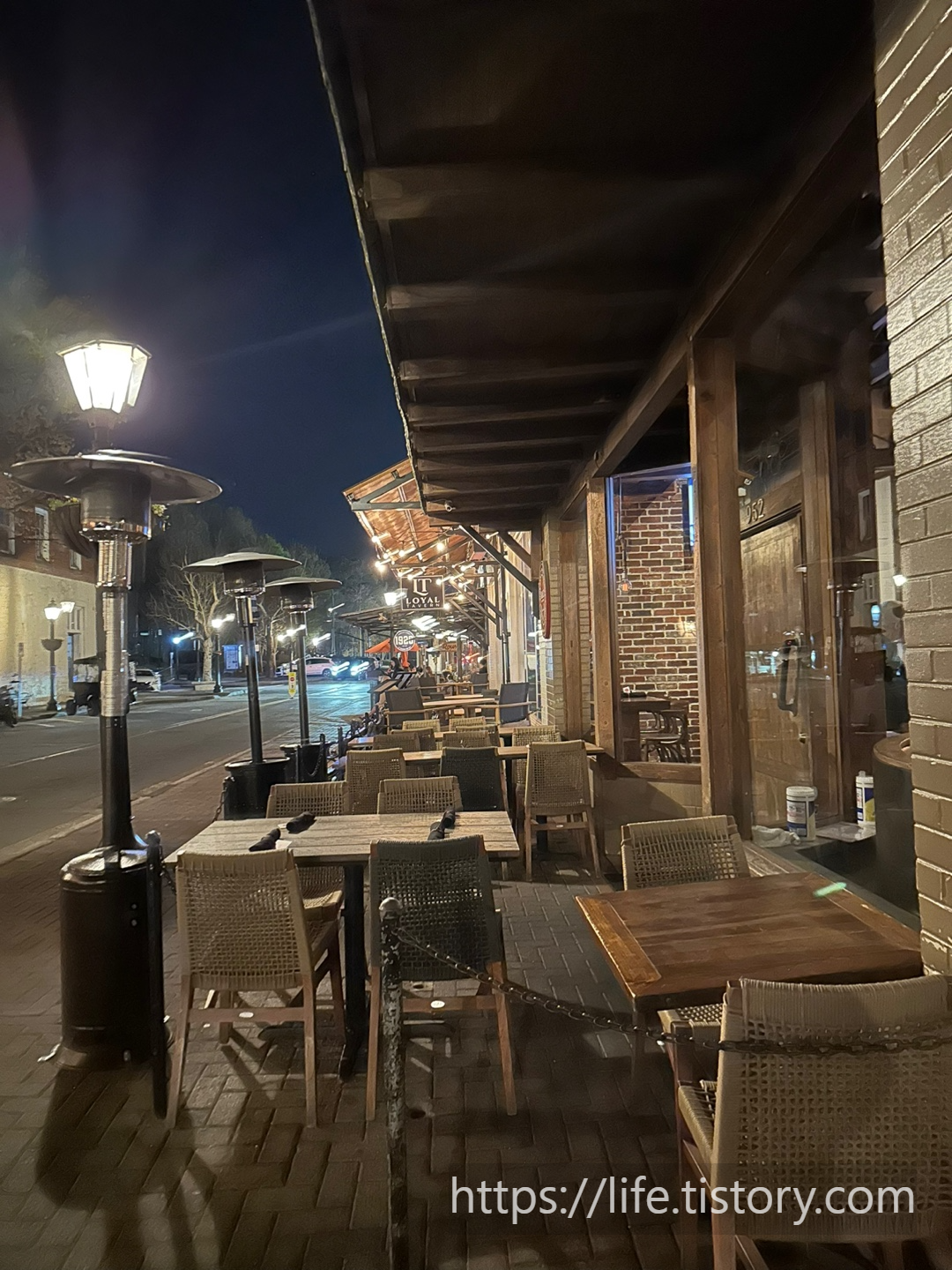 저녁 9시쯤이라서 거리의 식당들은 대부분 문을 닫기도 하고 손님들도 없었다. 주중이라서 더 빨리 마감을 한 것 같은 느낌이다. 거리가 예뻐서 사진을 찍었다.