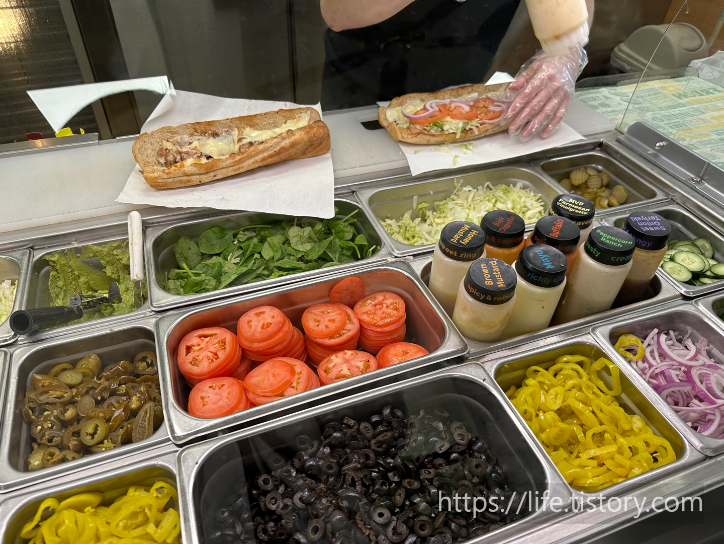 가격은 풋롱을 시키면 10불이 넘어가서 저렴한 편은 아니지만 채소를 많이 먹어서 은근 건강한 식사를 한 기분이 든다.