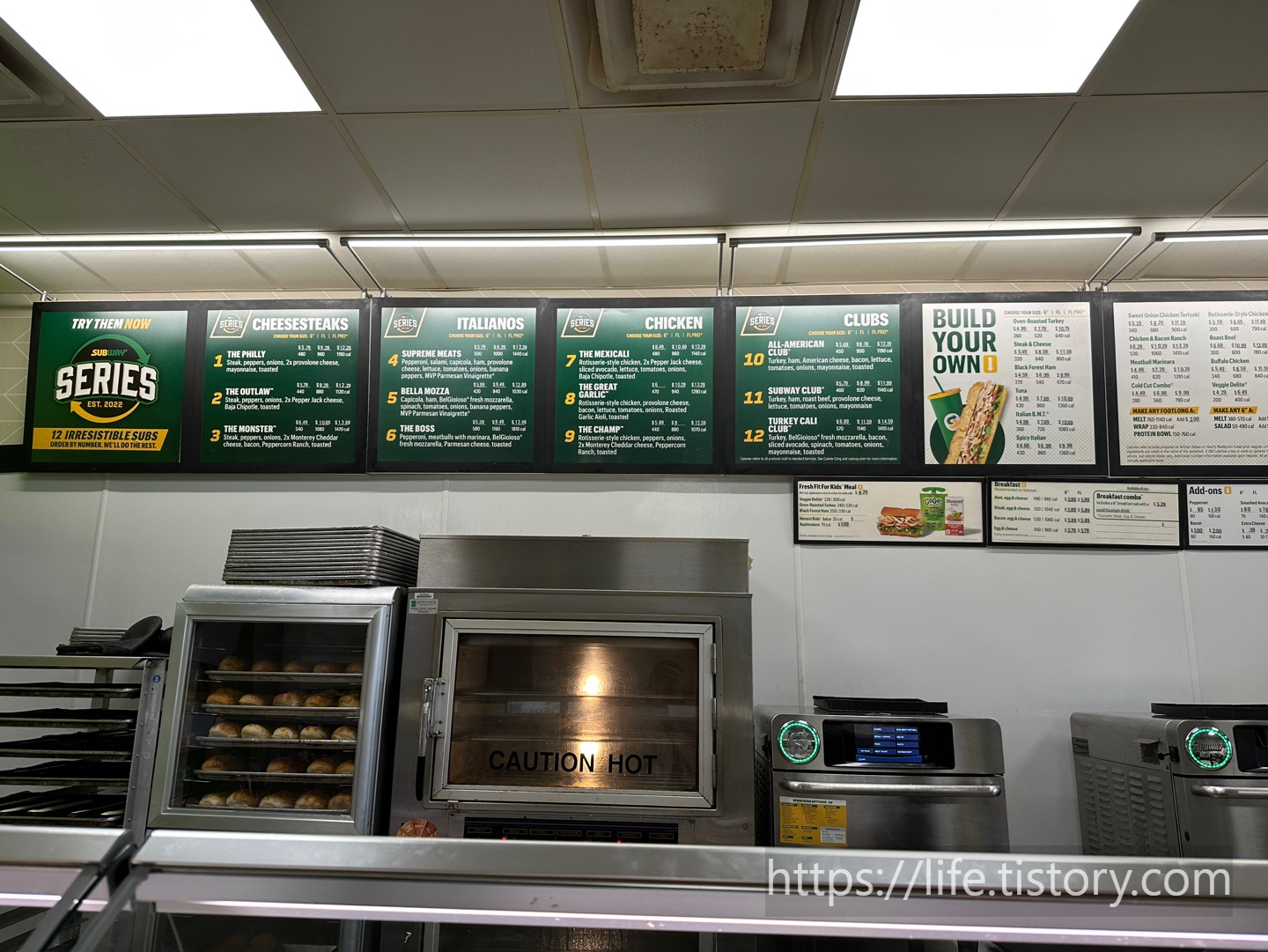 미국 서브웨이도 한국에 있는 서브웨이와 똑같다. 메뉴는 조금 다를 수도 있겠지만, 오전 시간에 가도 손님이 있고 점심시간에도 손님이 꽤 있었다.