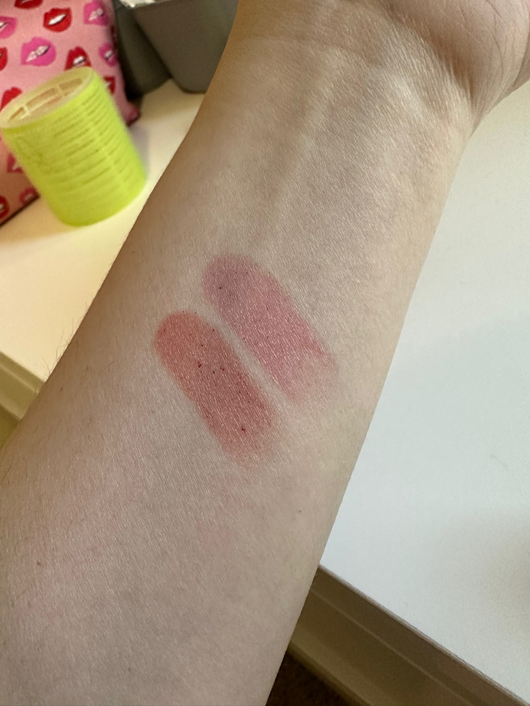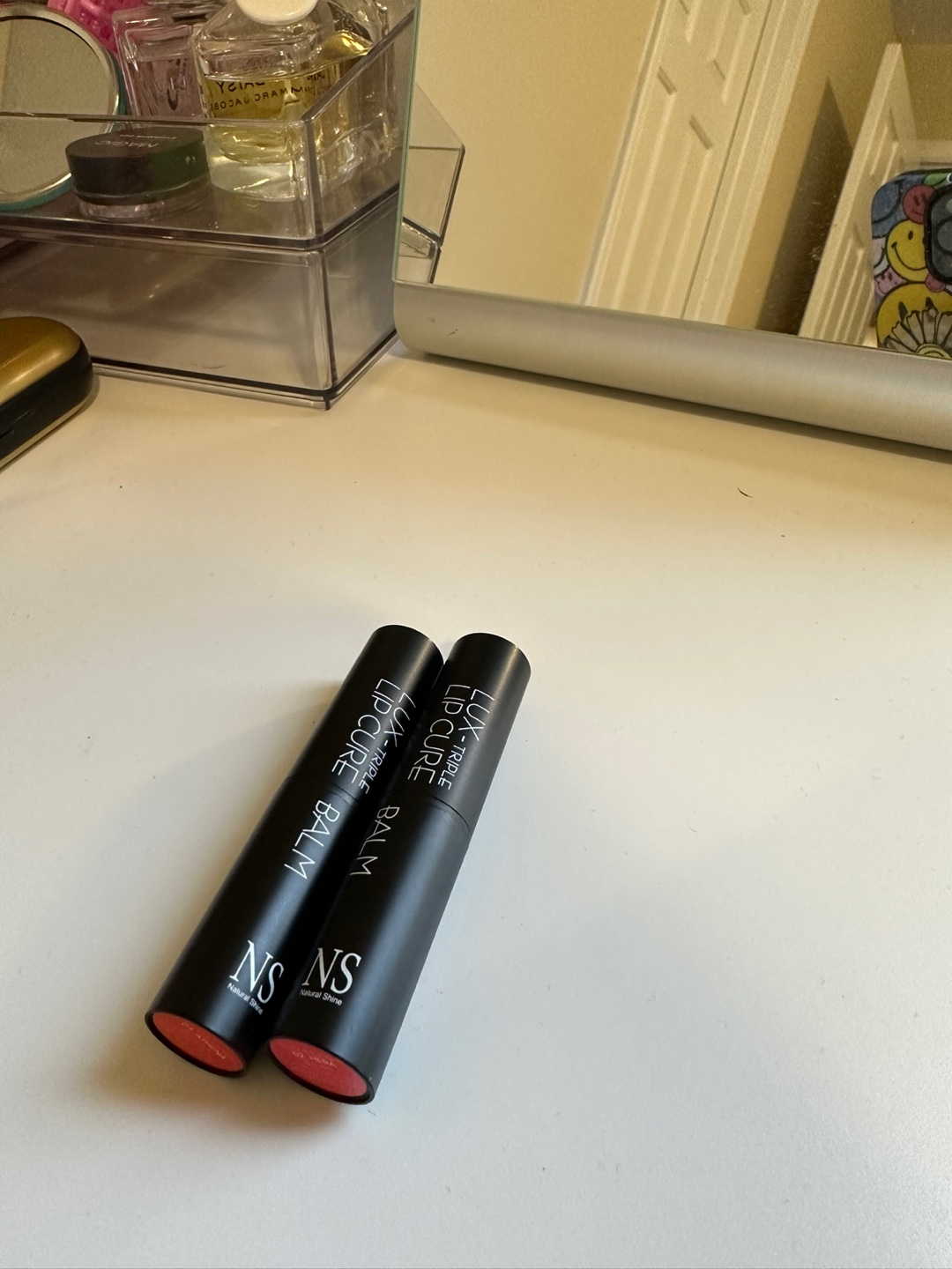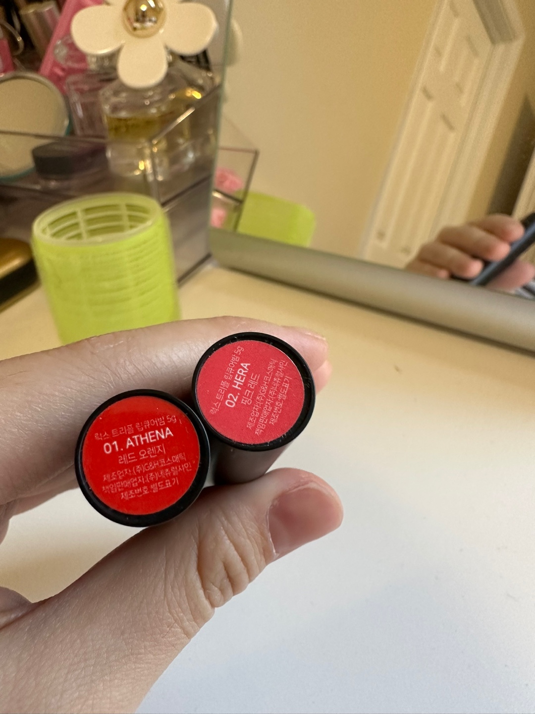 두 가지 색 중 레드오렌지가 외출할 때 바르면 더 좋을 것 같다.