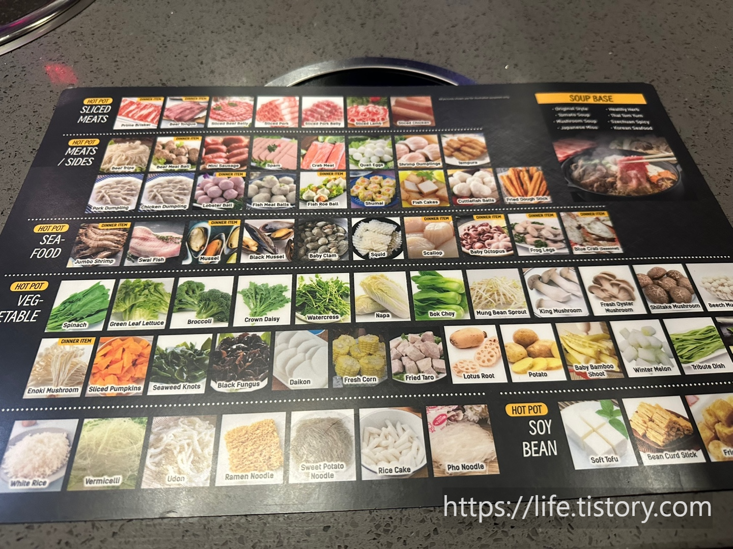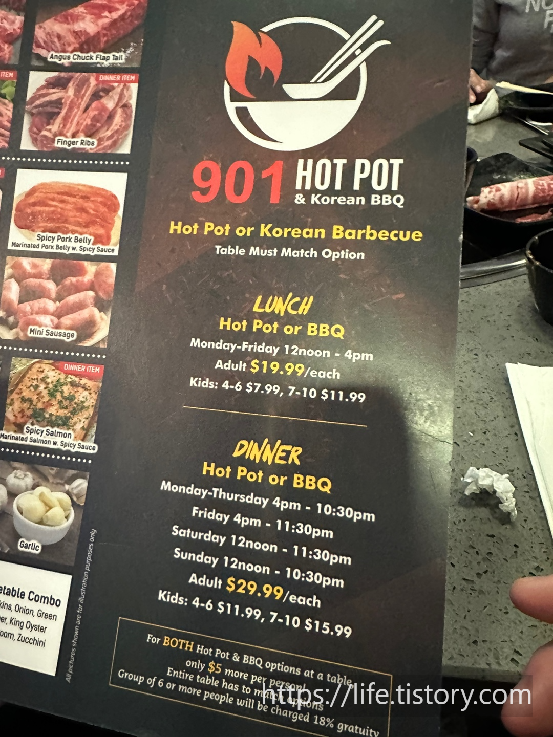 한쪽 면은 BBQ 메뉴 한쪽 면은 핫팟 메뉴다.