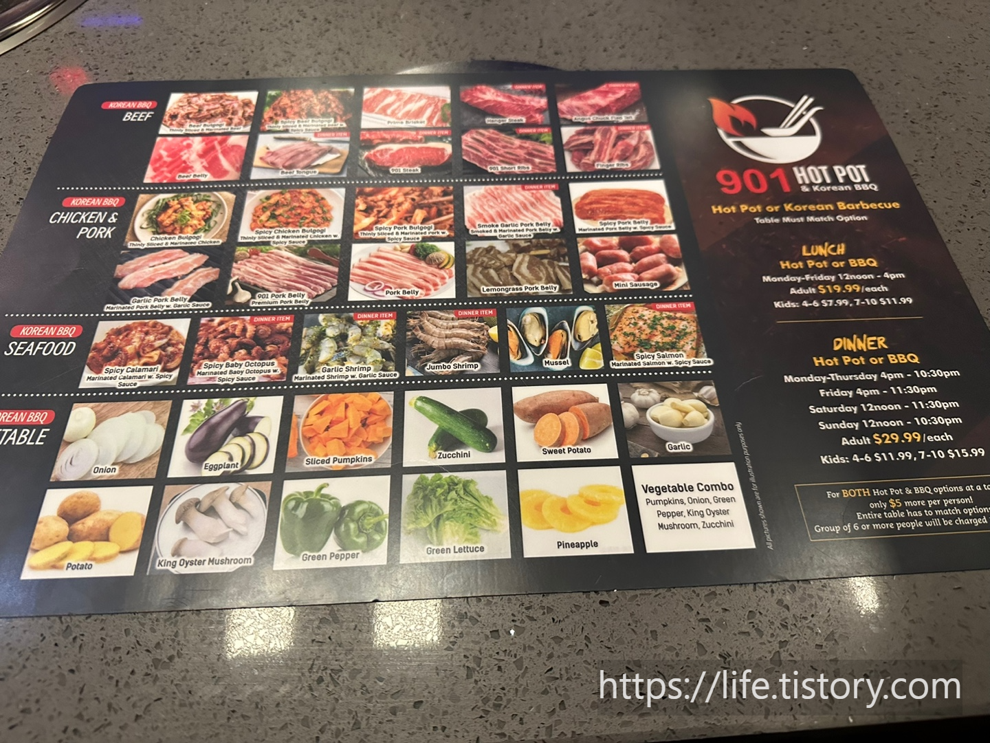 Hot pot or BBQ월요일 - 금요일 12:00 pm ~ 4:00 pm성인 $19.99/each어린이 4-6살 $7.99 , 7-10살 $11.99