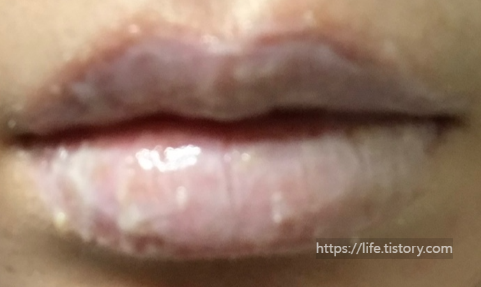 처음에는 화장을 안 했다가 나중에는 화장도 했는데 다행히 입술이 계속 괜찮았다.