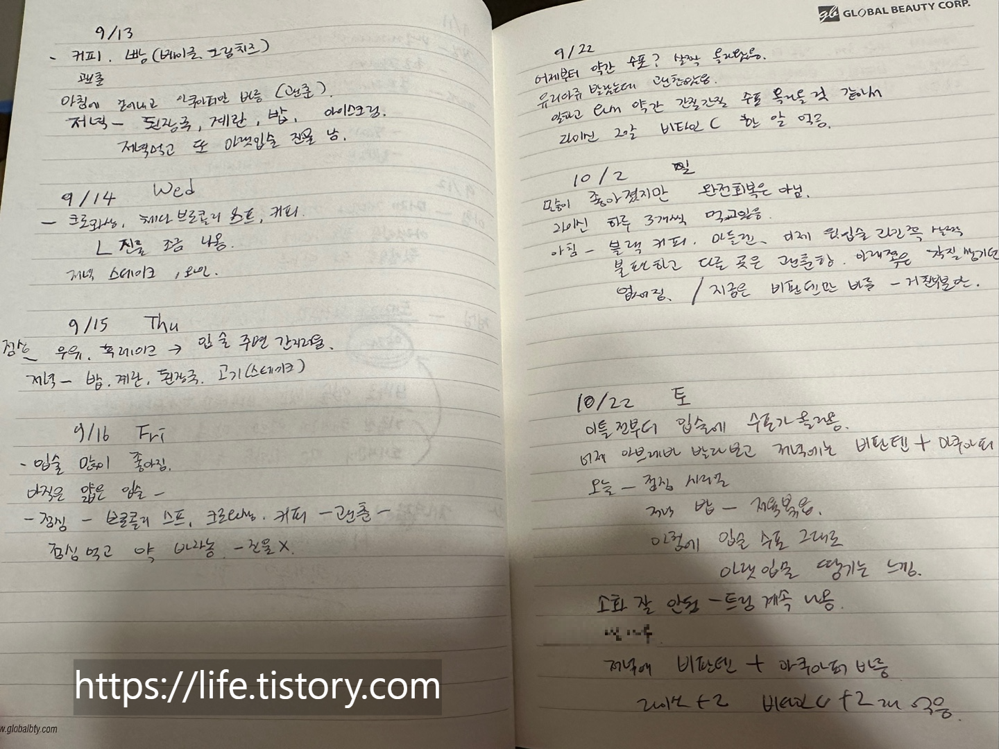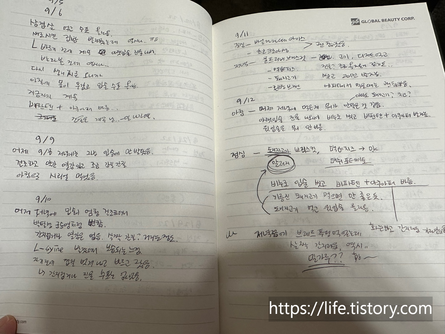 입술일지, 상당히 꼼꼼히 쓰고, 어떤 음식을 먹었고, 입술 상태가 어땠는지, 그때 당시의 몸 컨디션도 다 적었었다.