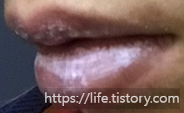 수포가 없어서 다행인지는 모르겠으나 이제 박탈성 구순염의 시작이었다. 만성으로 넘어간 듯싶었다.