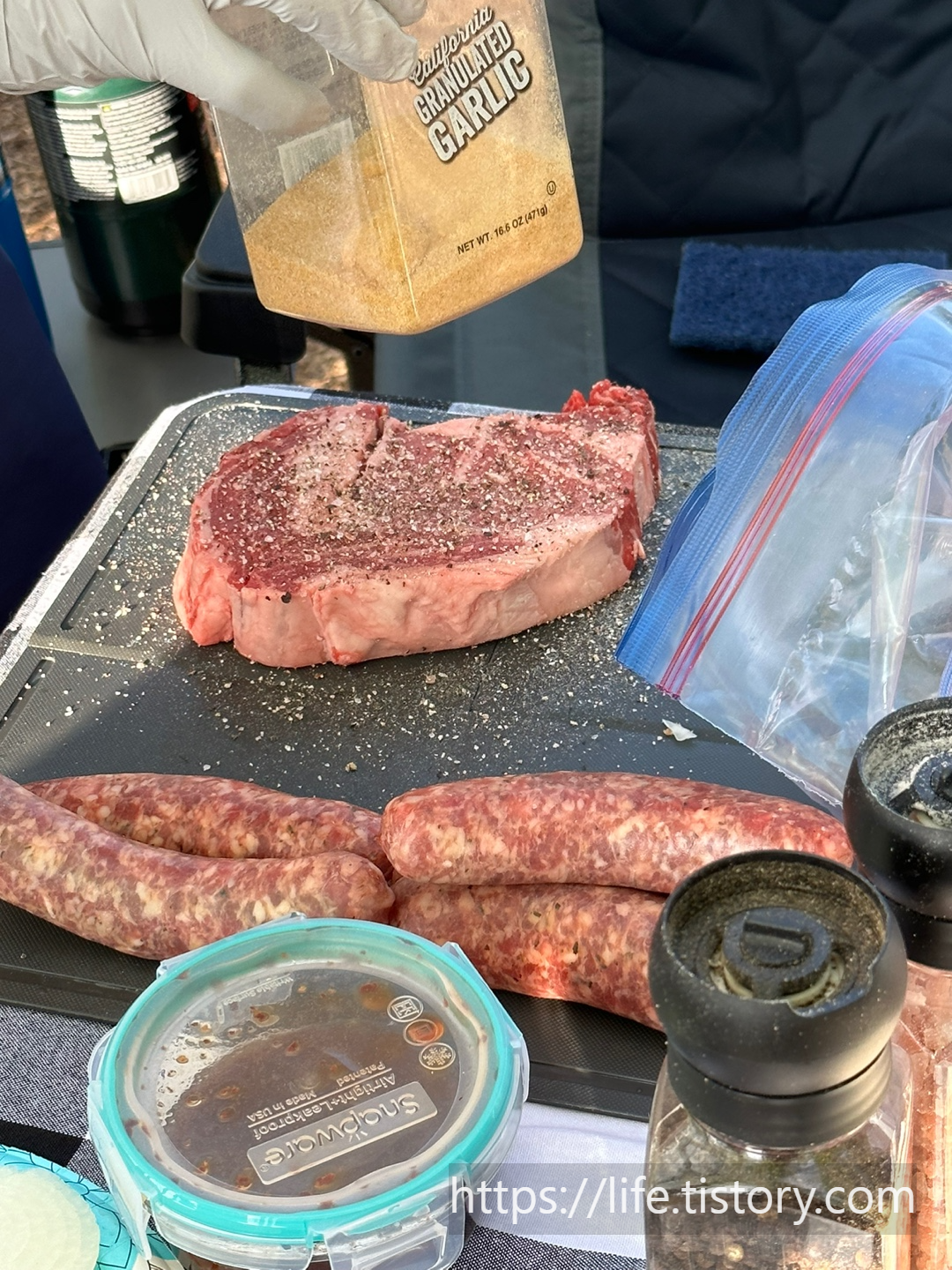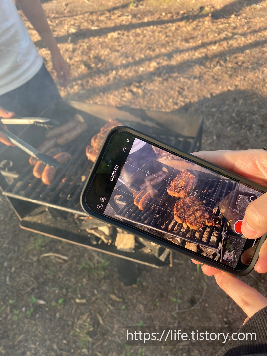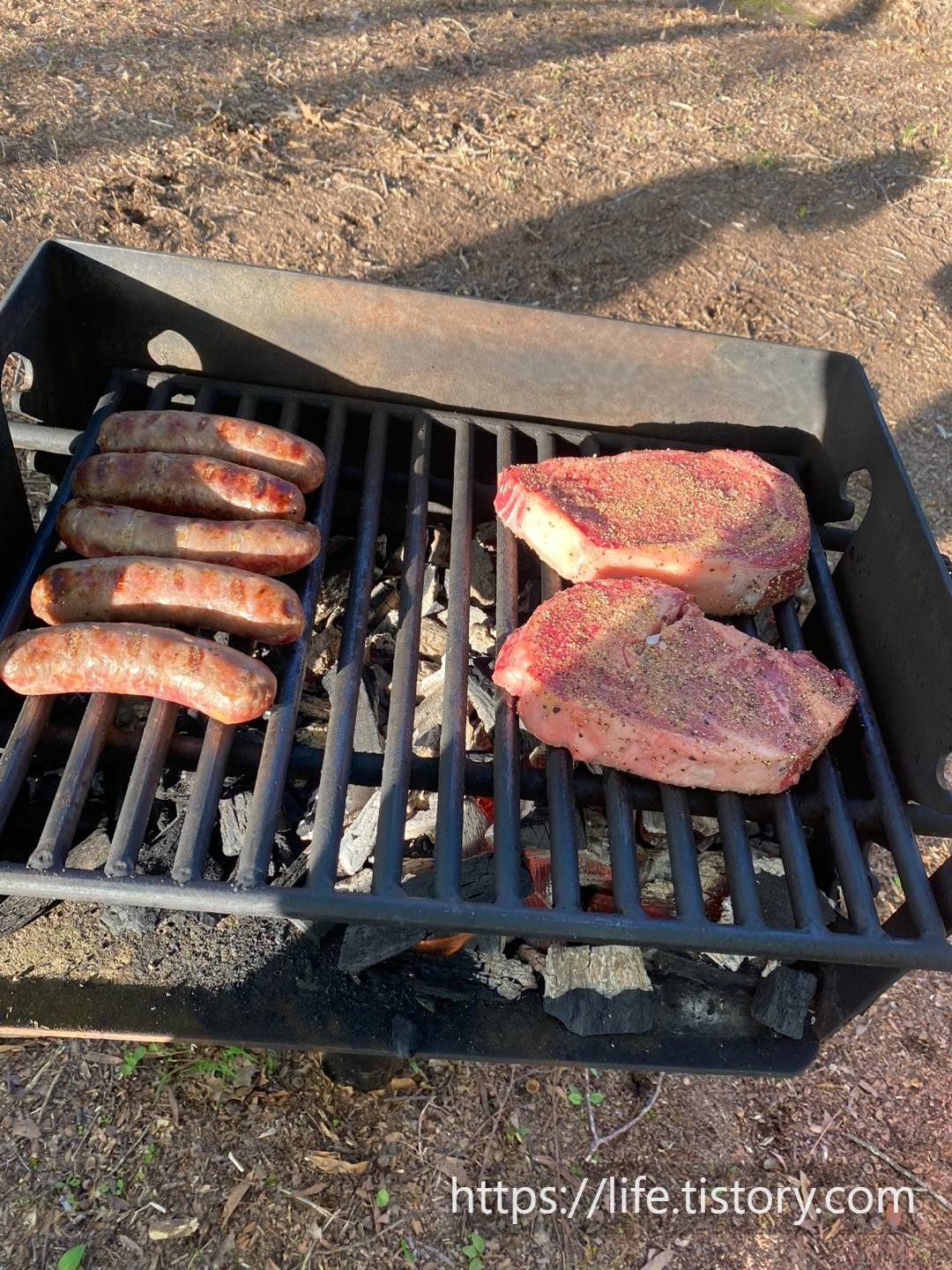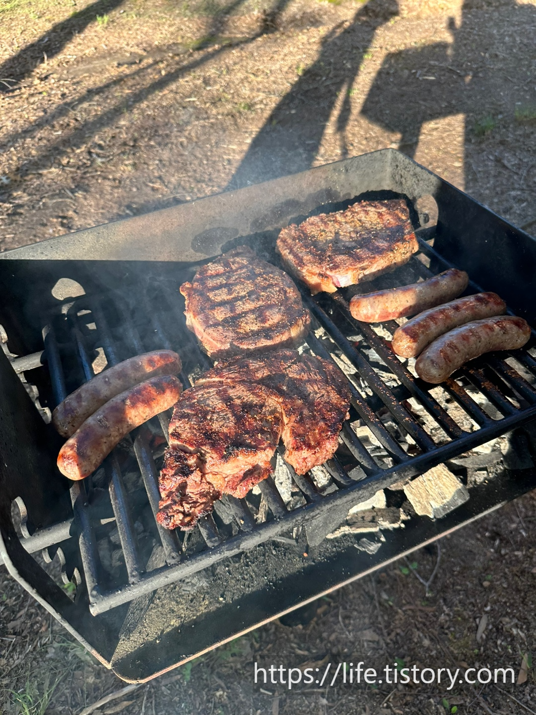 세팅을 착착착 끝내고 고기를 굽고, 라면을 끓였다.