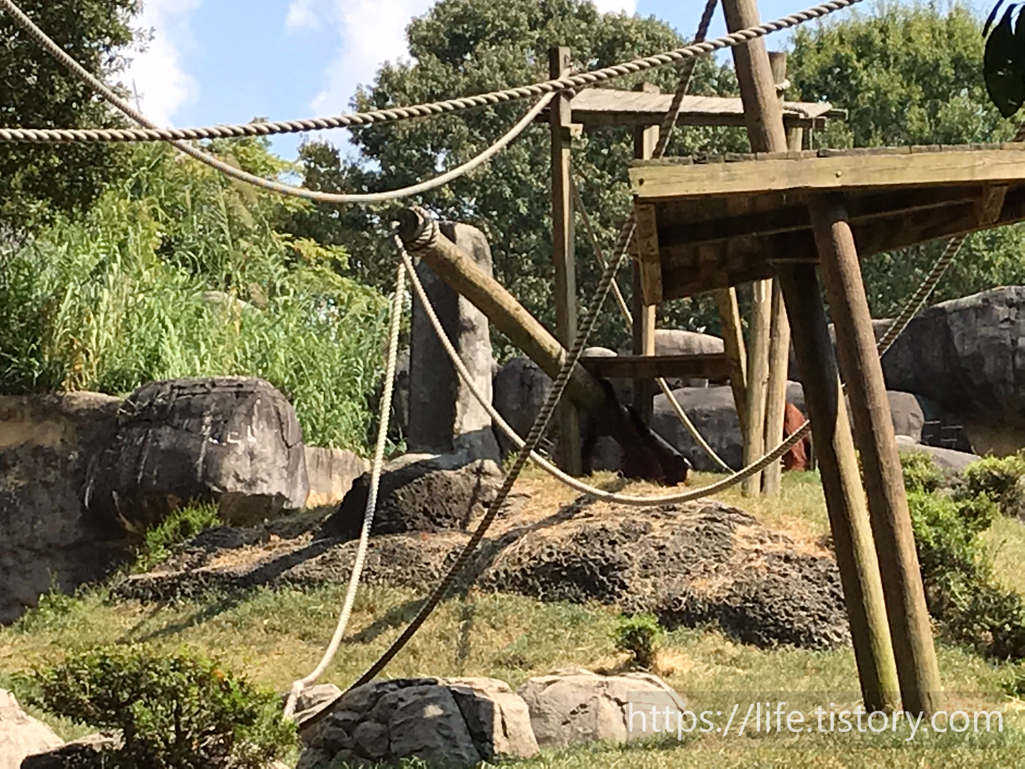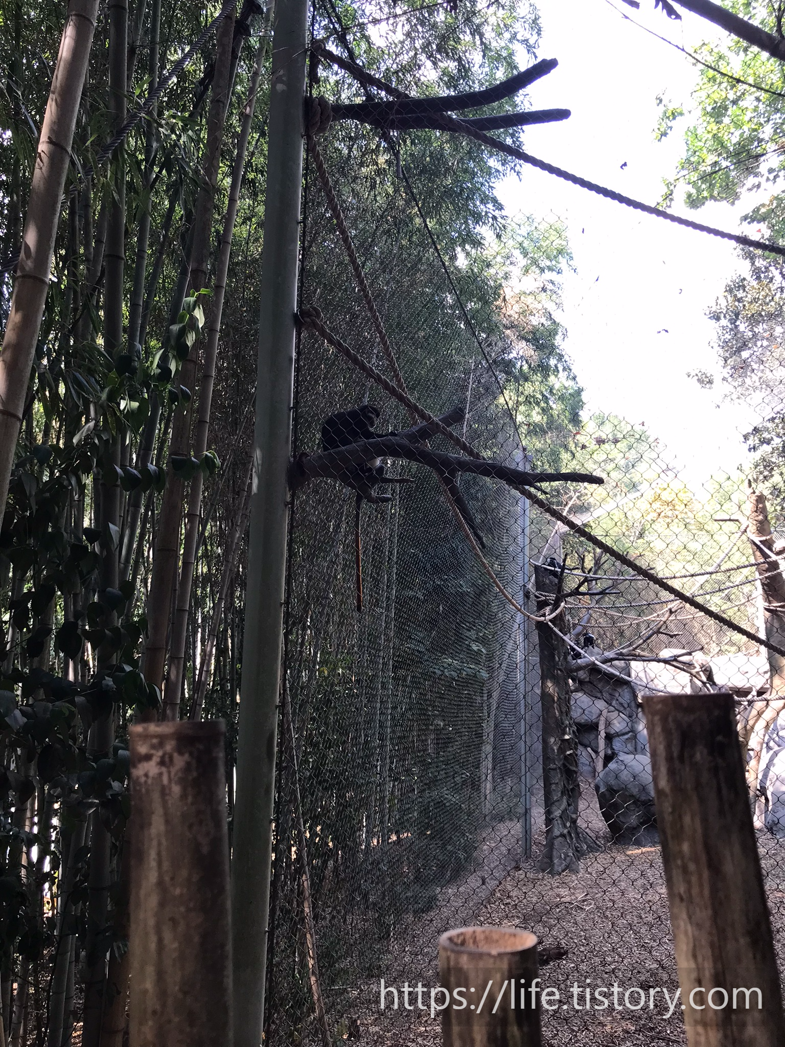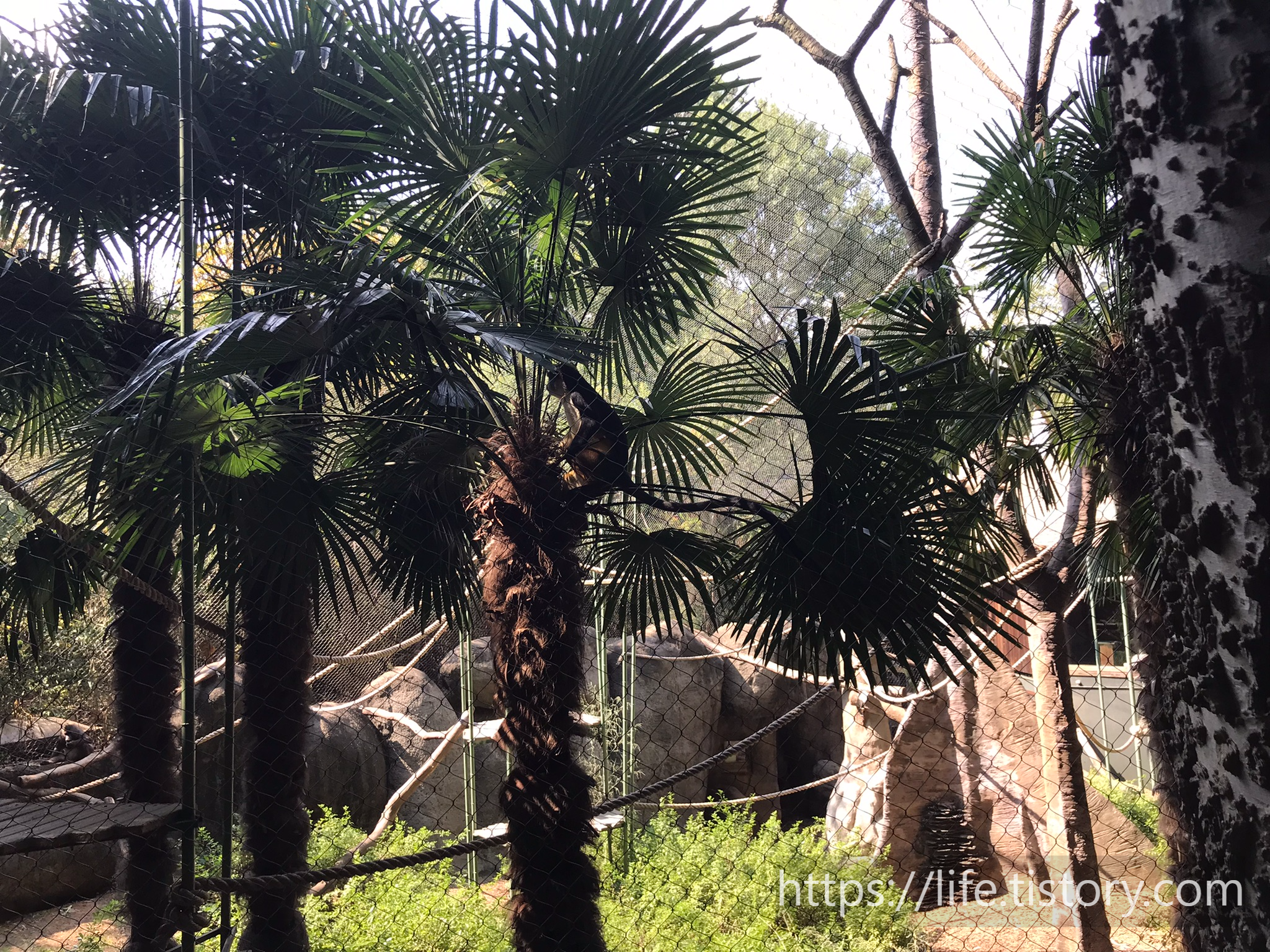 저 멀리에 있는 원숭이 그물이 위에는 뚫려있는 것처럼 보여서 탈출할 수 있지 않을까 궁금했다.