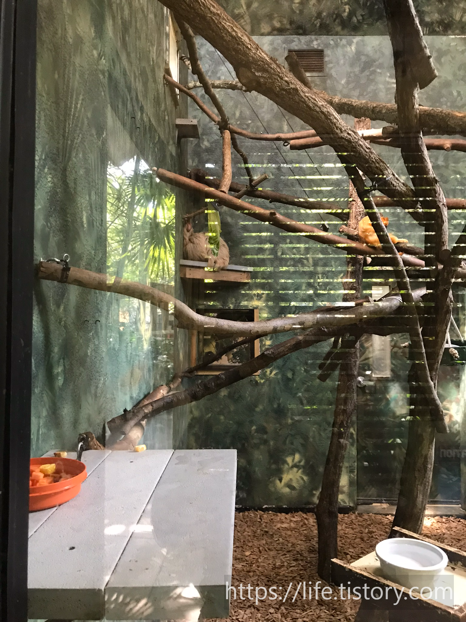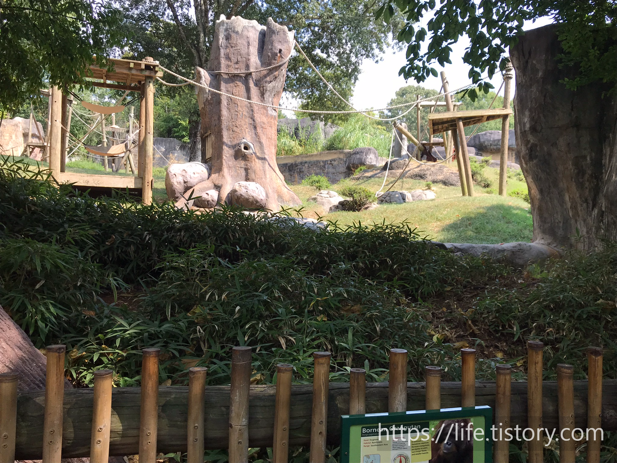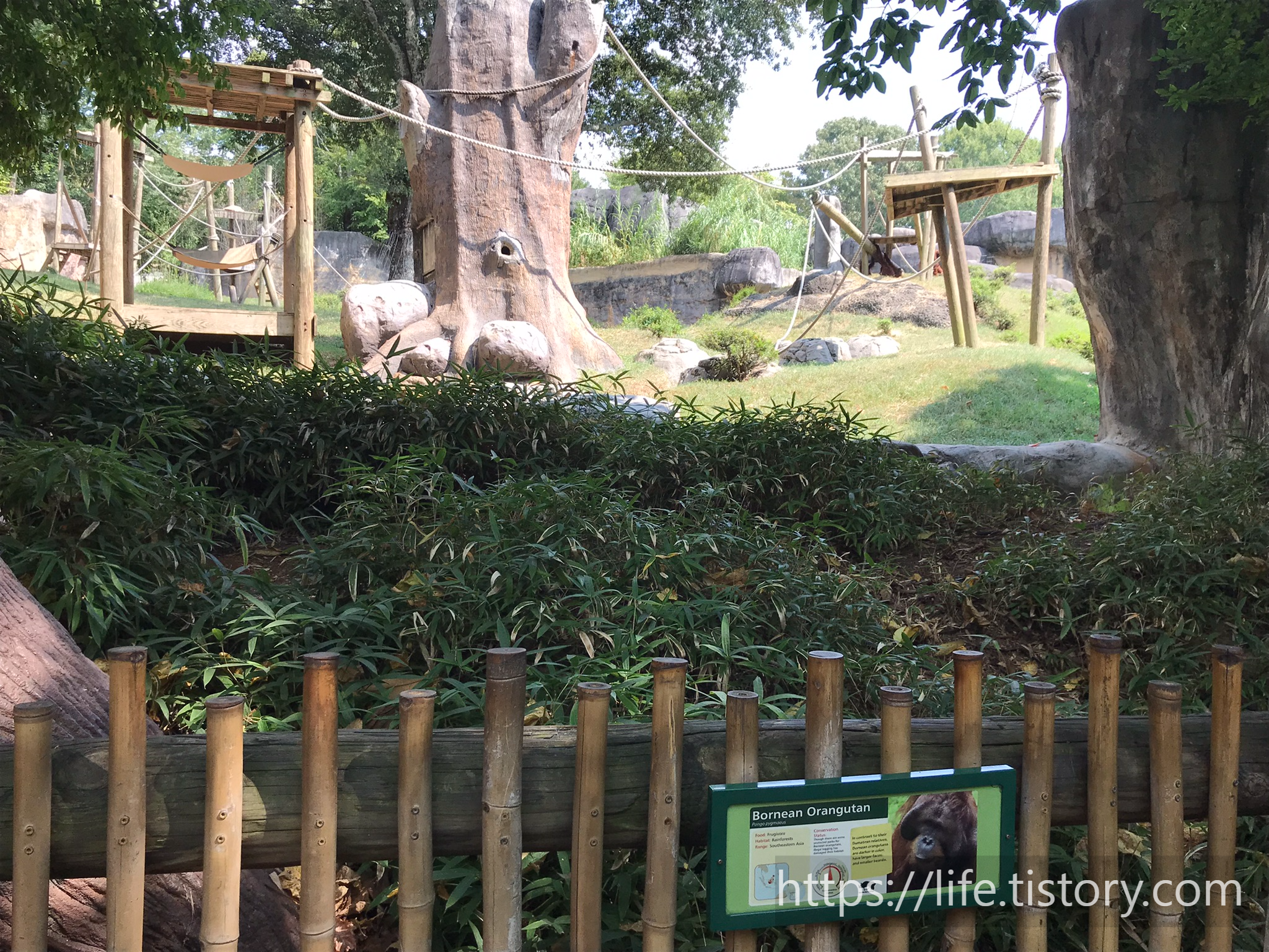 저 멀리에 있는 원숭이 그물이 위에는 뚫려있는 것처럼 보여서 탈출할 수 있지 않을까 궁금했다.