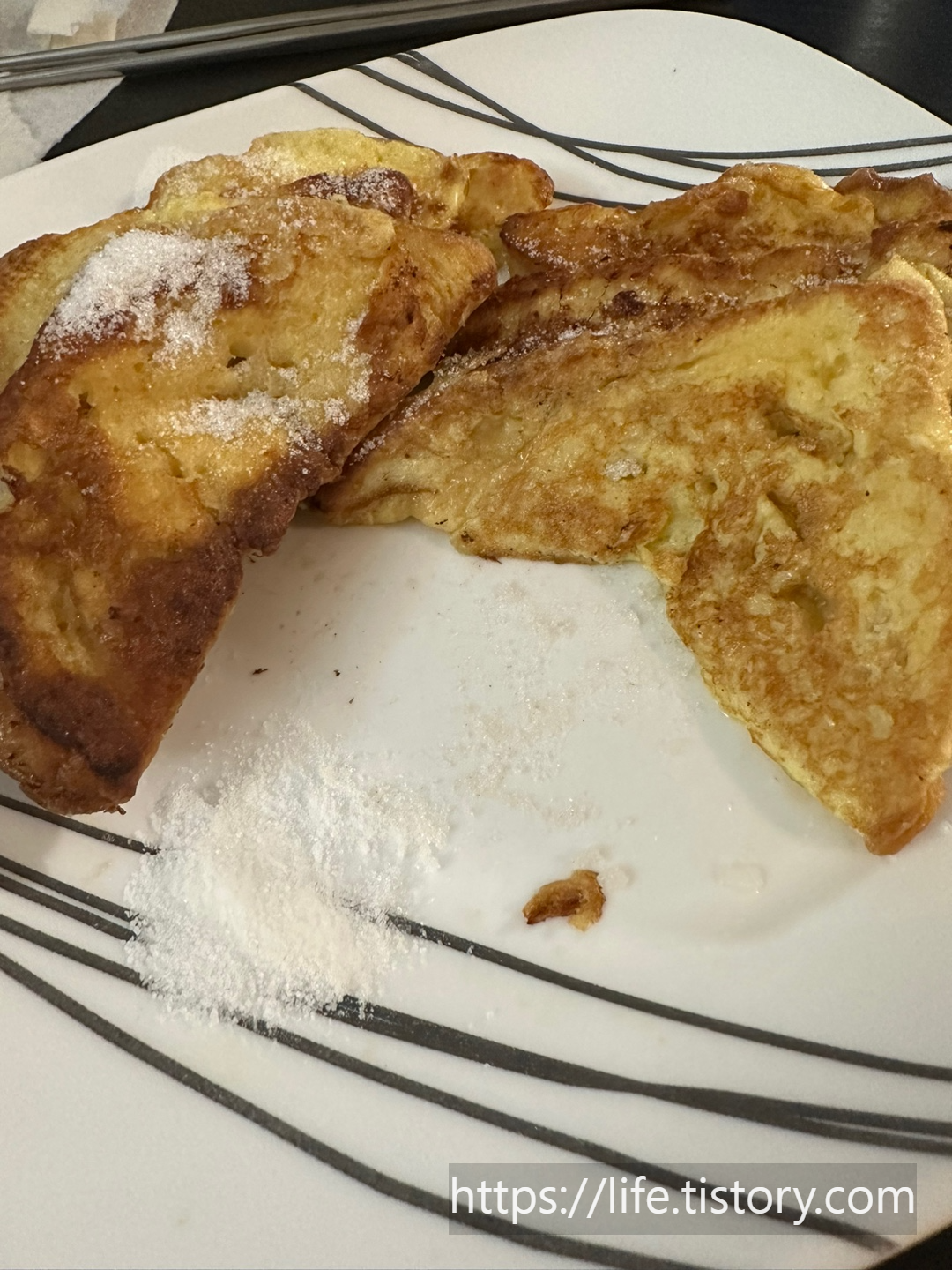 저녁에 갑자기 기름진 음식이 당겨서 만든 계란 설탕 토스트, 먹고 나니 속이 든든하면서 풀리는 느낌을 받았다.