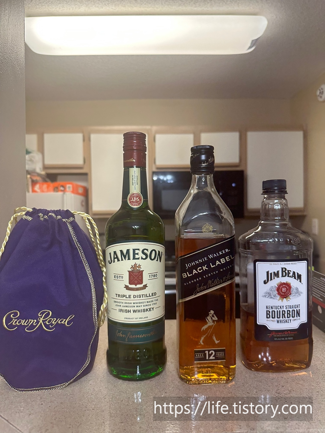 왼쪽 로열크라운과 제임슨은 아직 안 열었다. 당분간 술은 안 마셔도 될 것 같다.