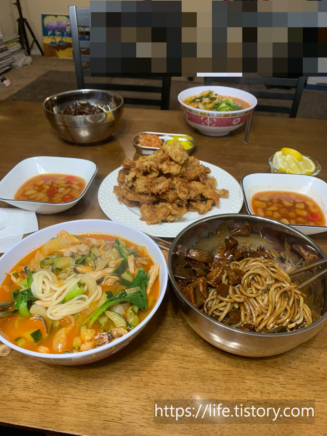 사진이 많이 없지만 짜장면과 짬뽕 만들기는 생각보다 시간이 많이 안 걸렸다.