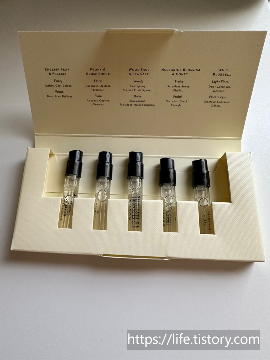 총 다섯 가지 향이 들어있다.