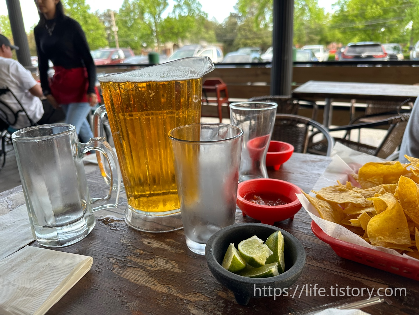 음식이 조금 늦게 나와서 나쵸를 열심히 먹었다.