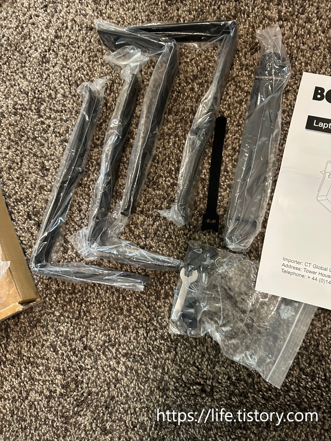 설명서와 함께 부품들이 들어있다.