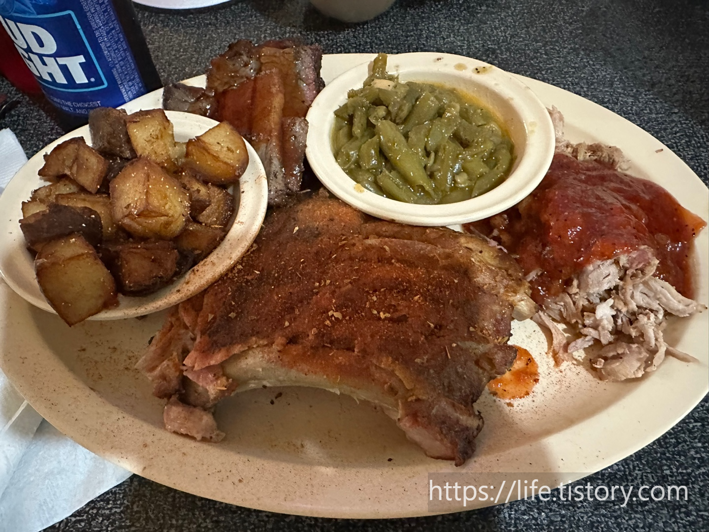 미국 가정집에서 바비큐를 하면 이렇게 나오지 않을까 생각이 드는 바비큐집에 갔다.