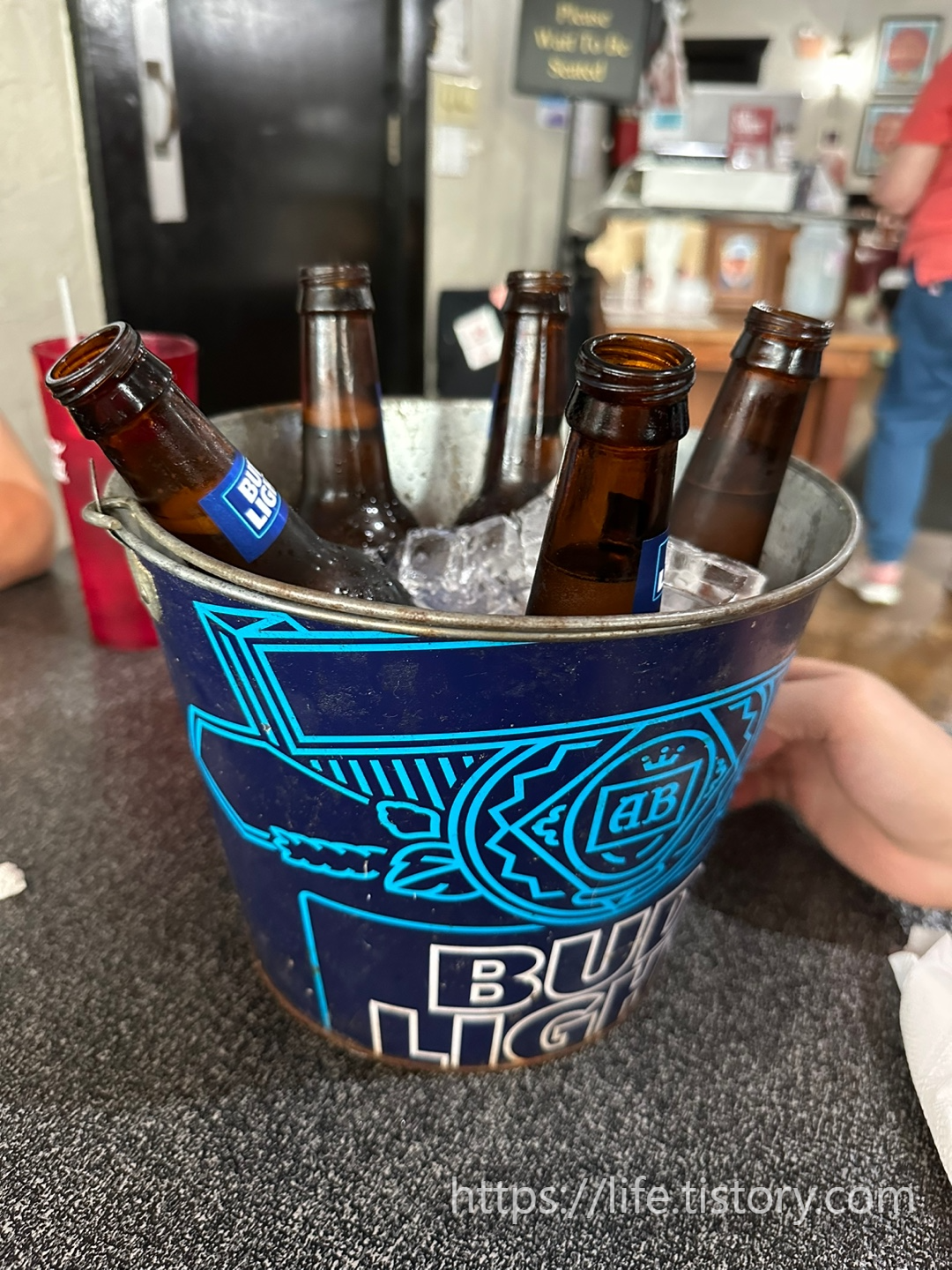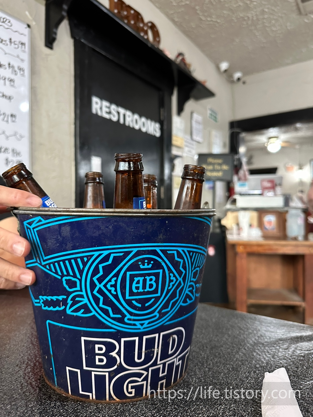 한 버켓에 6병 $16.99 식당에서 마시는 맥주가격으로는 저렴한 느낌이었다.