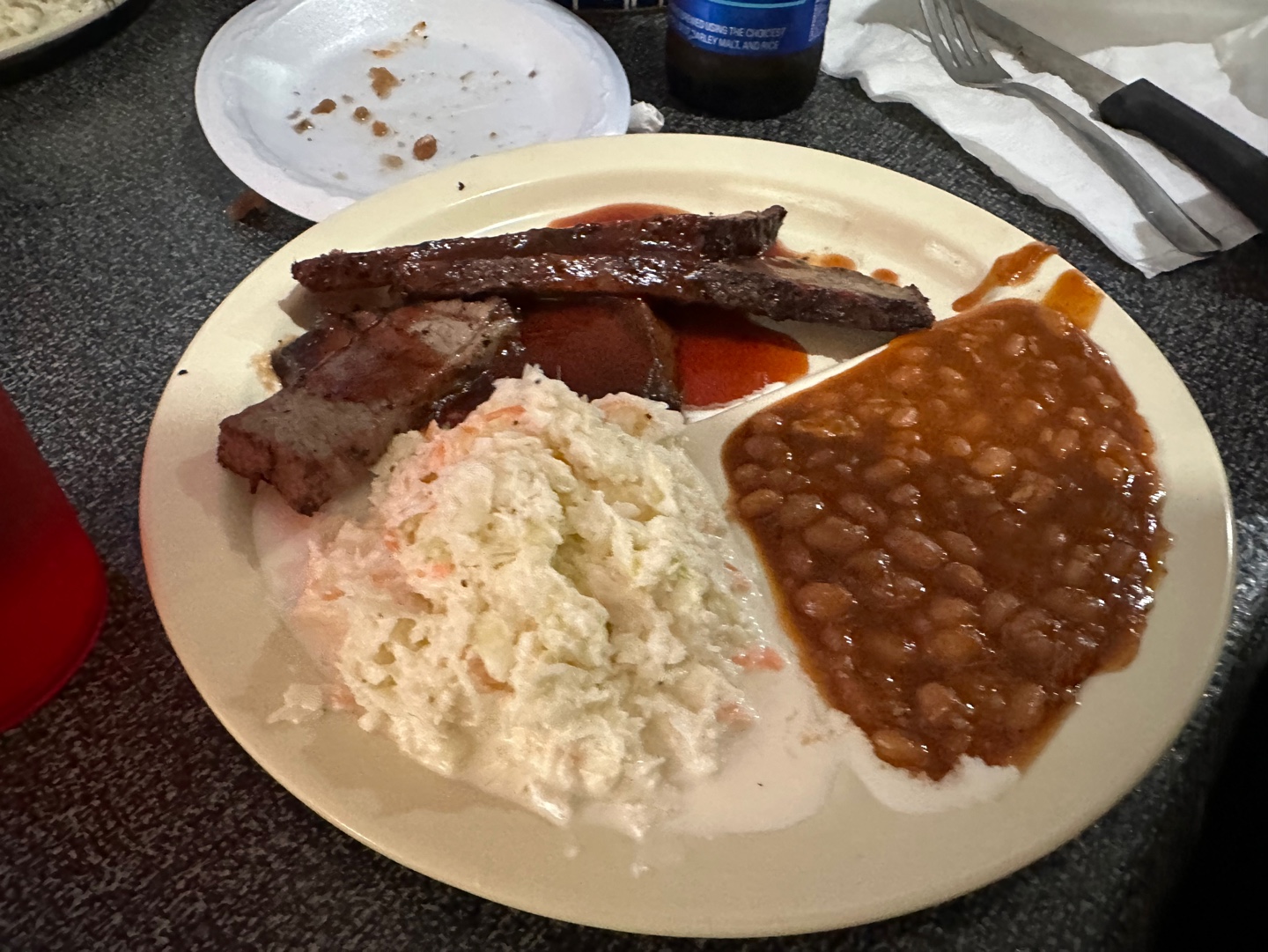 남편과 지인이 시킨 BBQ Plate 코우슬로와 레드빈이 함께 나왔다.