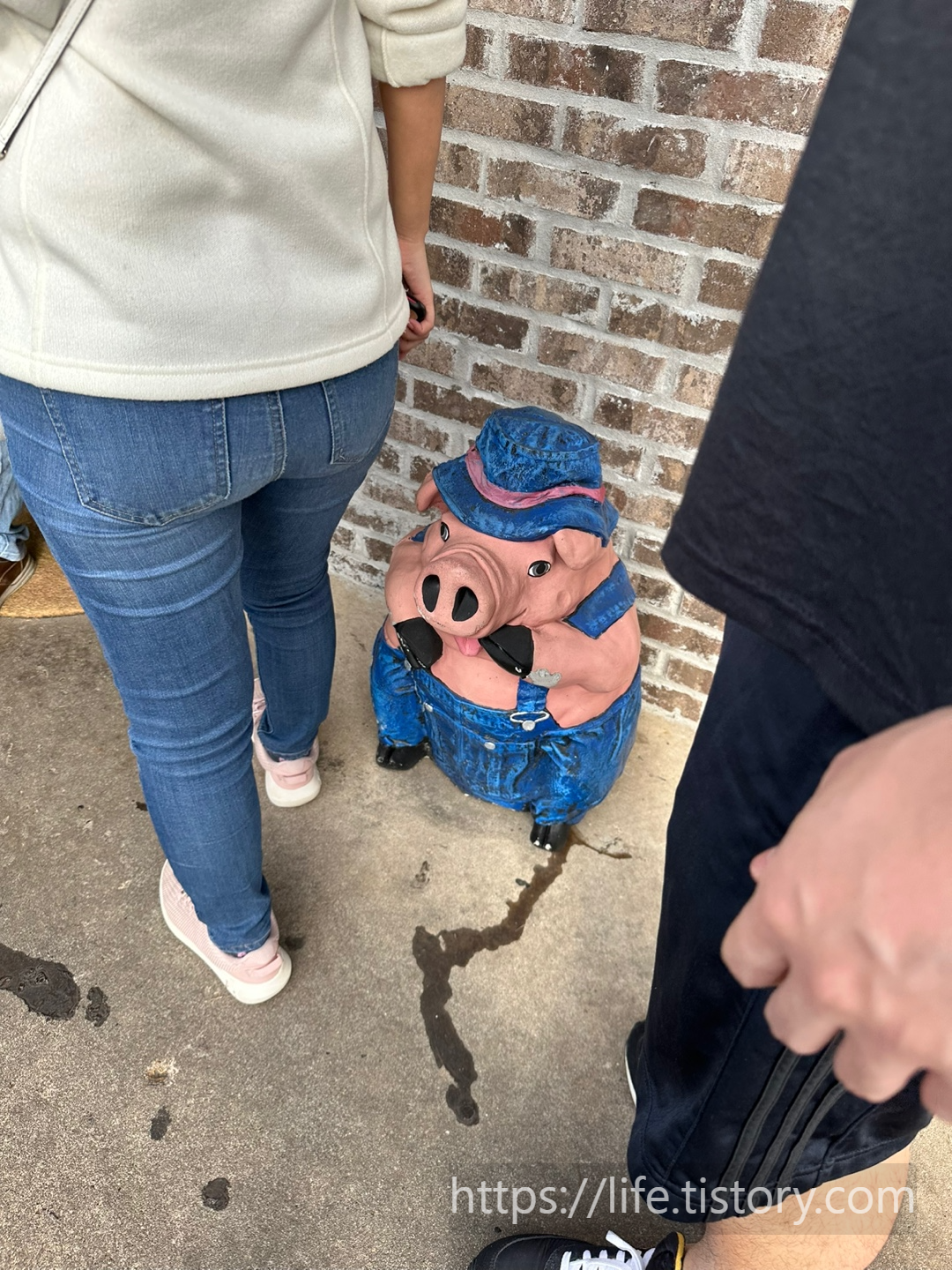 Fat larry's 간판이 보인다. 돼지 캐릭터가 칼과 포크를 들고 있다.