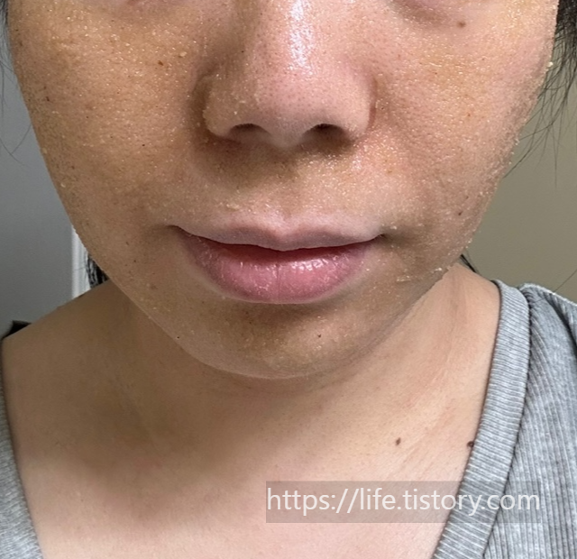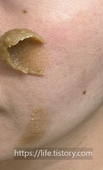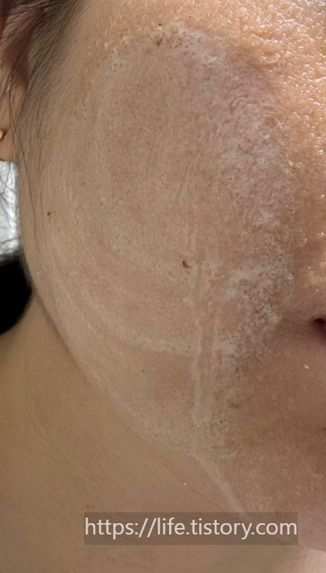 얼굴에 바르고 있을 때 살짝 간지러운 느낌이 들지만 참을 만하다.