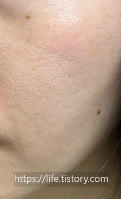 쓰기 전에는 얼굴이 붉은빛이 있는데 제품을 쓰고 난 후에 확실히 피부톤이 환해졌다.