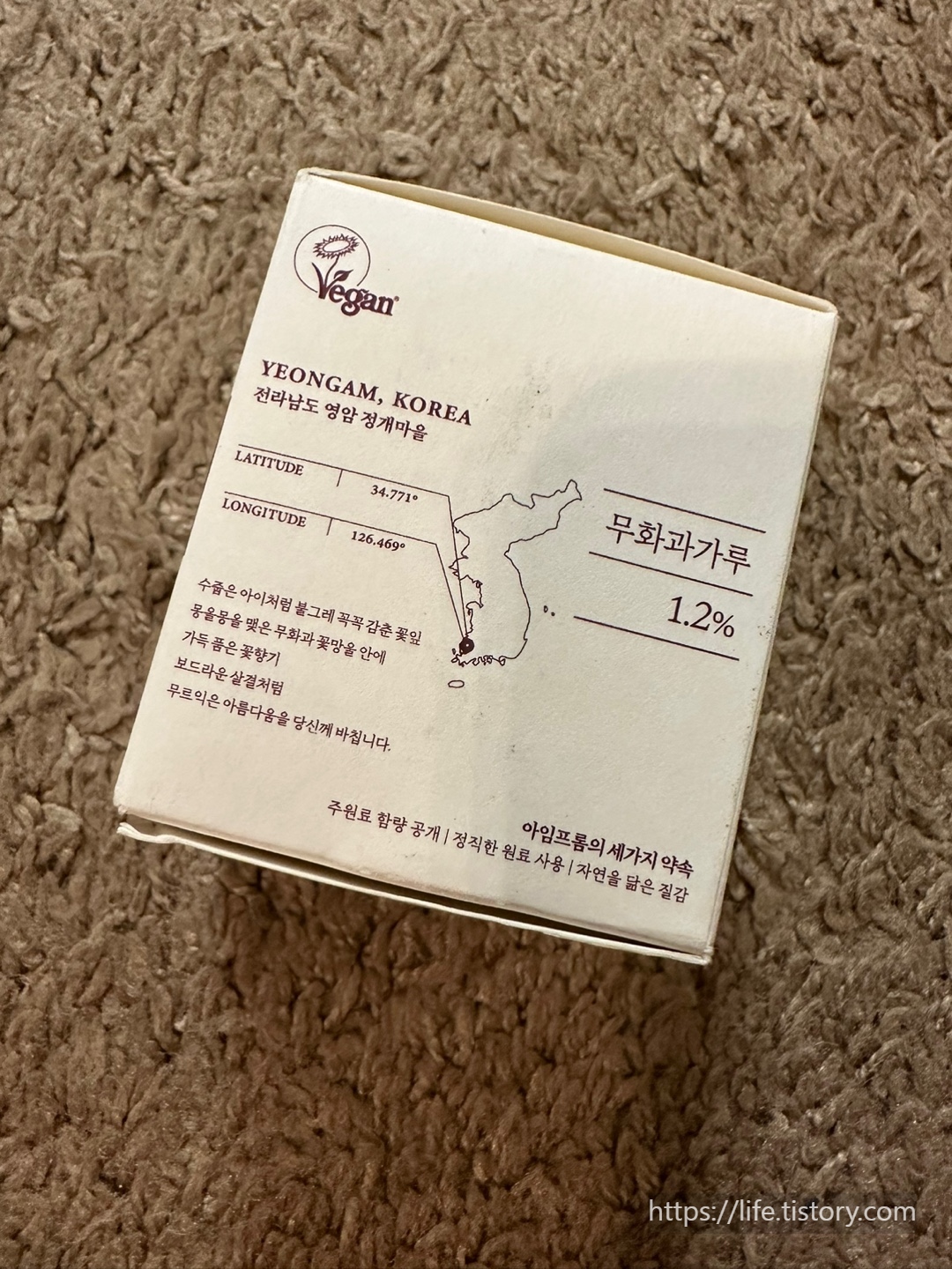 비건 화장품, 전라남도 영암에서 나오는 무화과가루를 사용했다고 한다.