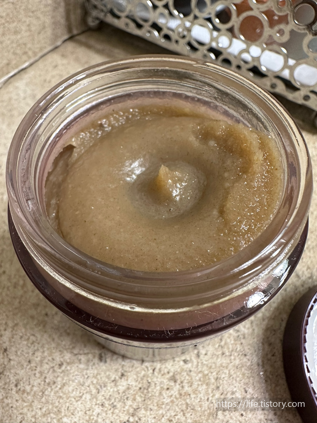 얼굴에 펴 바르면 설탕의 느낌 때문에 살짝 거친 느낌이 나지만 부드럽게 펴 발린다.