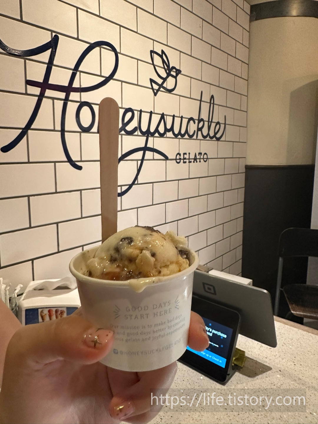 실내를 걷다가 실외를 걷다가 너무 더워서 사 먹은 젤라토, 엄청 달았어요 ㅎㅎ