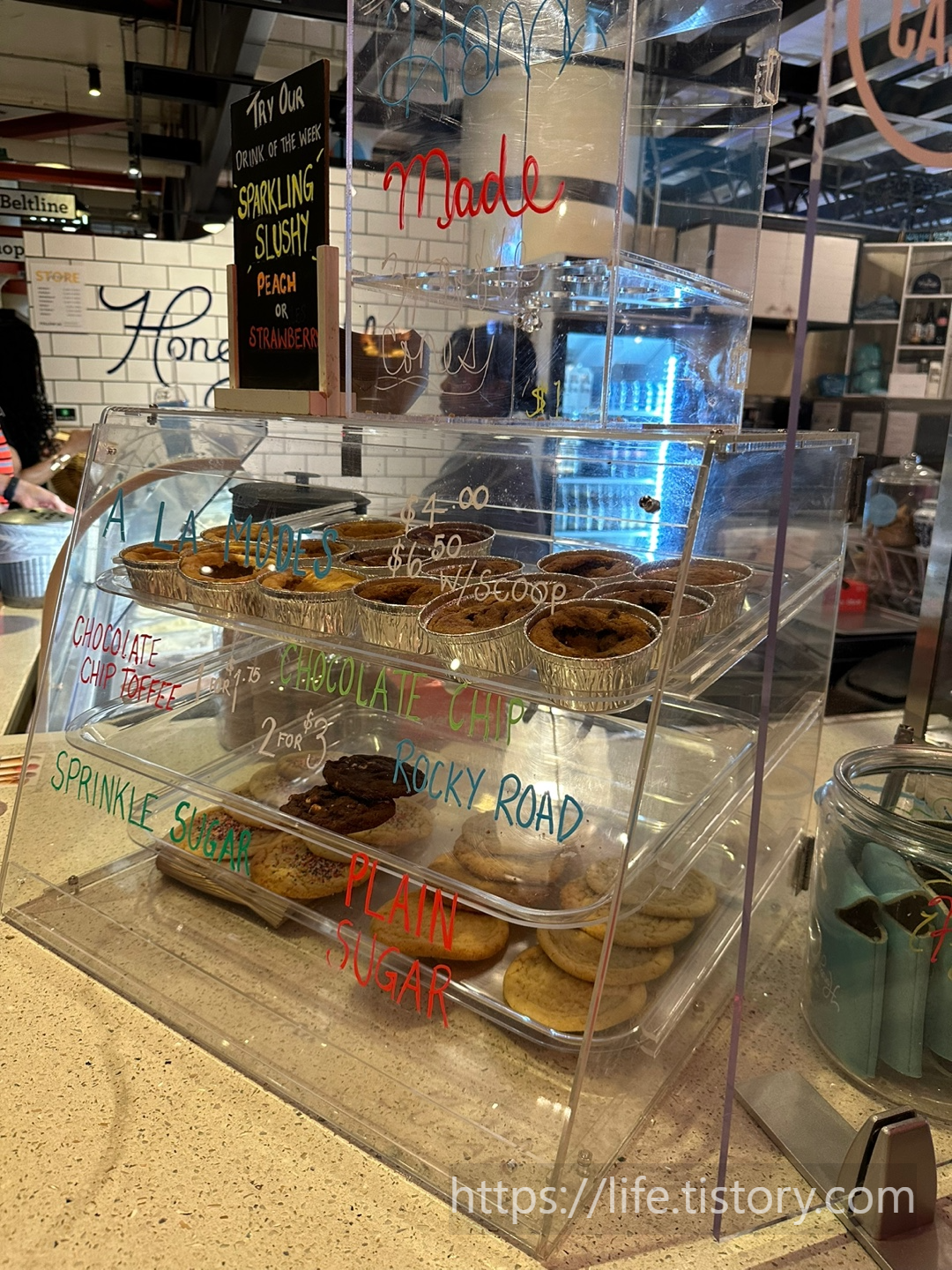 아이스크림 반대편 빵, 디저트 집 케이크이나 디저트 손바닥 만한 게 $7불 이상이라 보기만 했네요. 배가 고팠으면 먹었을지도 모르겠는데 점심을 먹고 가서 딱히 당기는 게 있진 않았어요.
