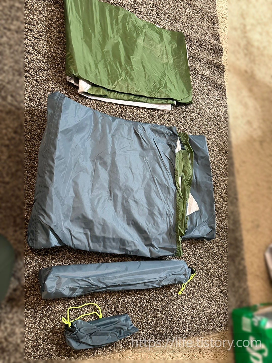 이렇게 작고 가벼운데 4인용? 그전에 월마트에서 샀던 캐노피는 무겁고 커다랬기 때문에 오랜만에 구매한 텐트도 그럴 거라고 생각했기 때문에 생각보다 아담한 사이즈에 놀랐다.
