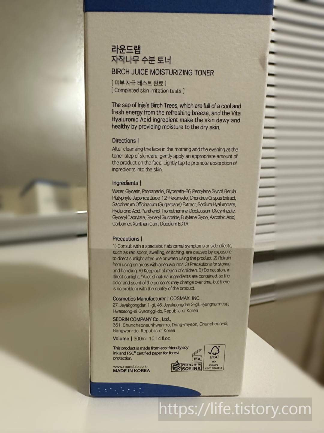 애틀랜타 갔을 때 H마트에서 본 자작나무 수분토너, 여름용 토너로 쓰려고 샀는데 집에 폴라스초이스 토너가 있어서 폴라스초이스 토너를 쓰다가 다 써서 새로 꺼냈다.