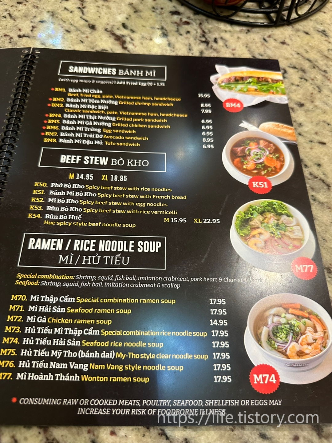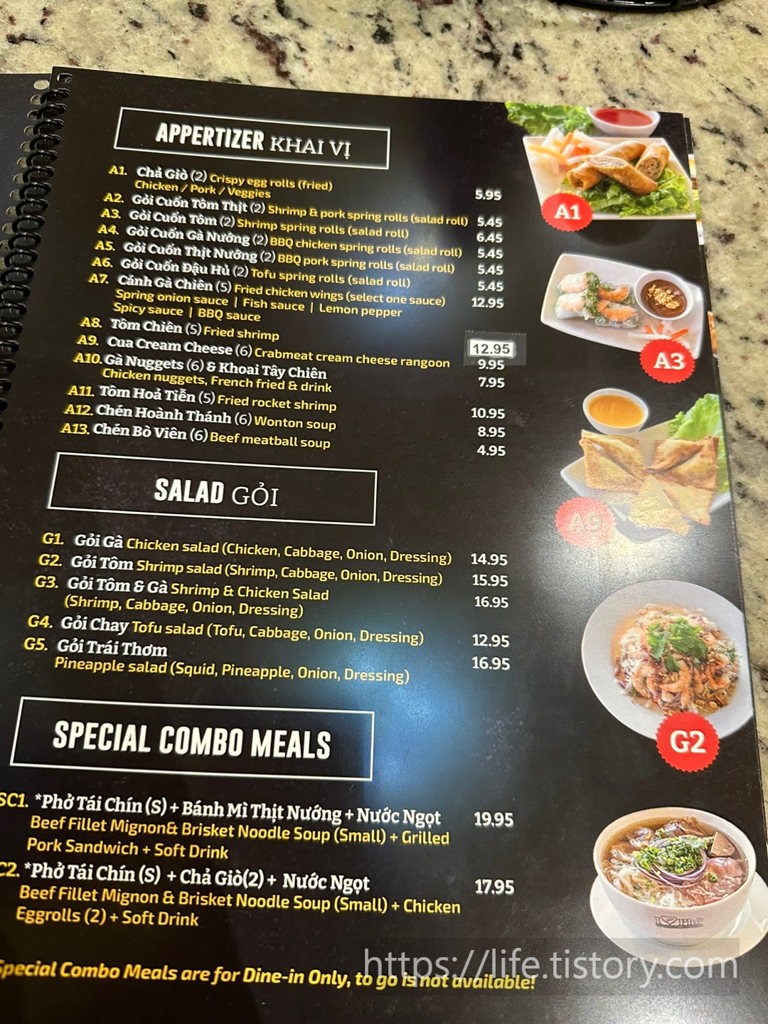 다양한 베트남 음식들이 메뉴에 있었고, 사진들도 있어서 보기 편했습니다.
