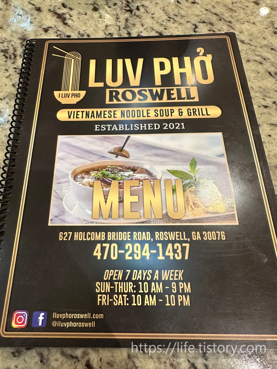로즈웰 빌리지 쇼핑센터에 있는 I Luv Pho 큰 내부와 깔끔한 인테리어, 지방러는 눈 돌아갑니다 ㅎㅎ