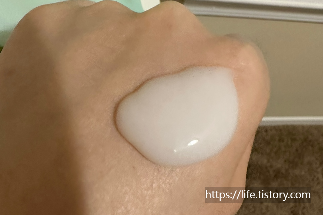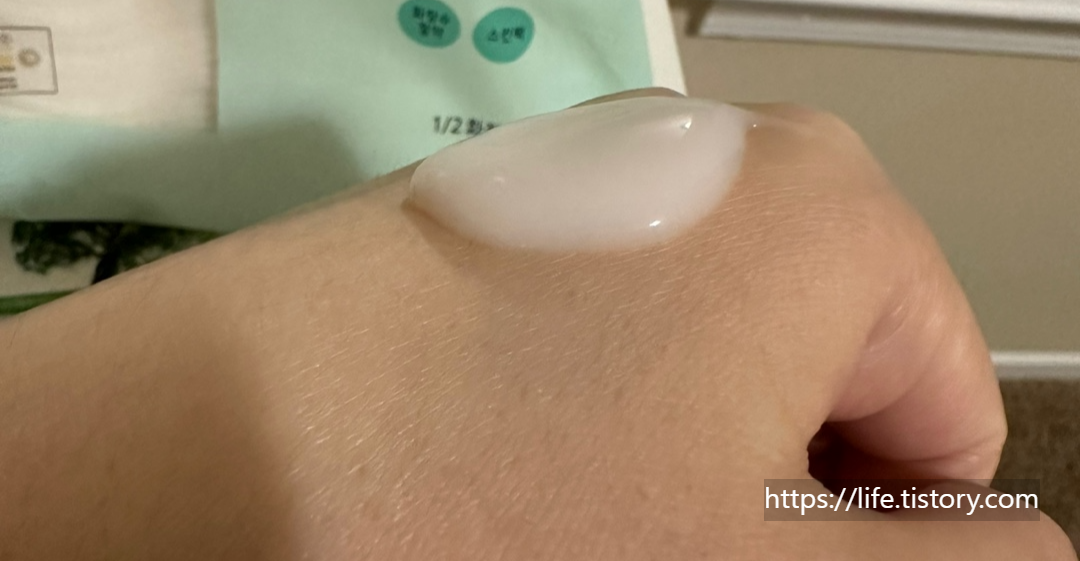 크림은 아니고 진한 콧물정도의 재형입니다. 얼굴에 펴 바르면 흡수가 잘 되는데 다 흡수시키고 나면 피부가 쫀득쫀득하다.