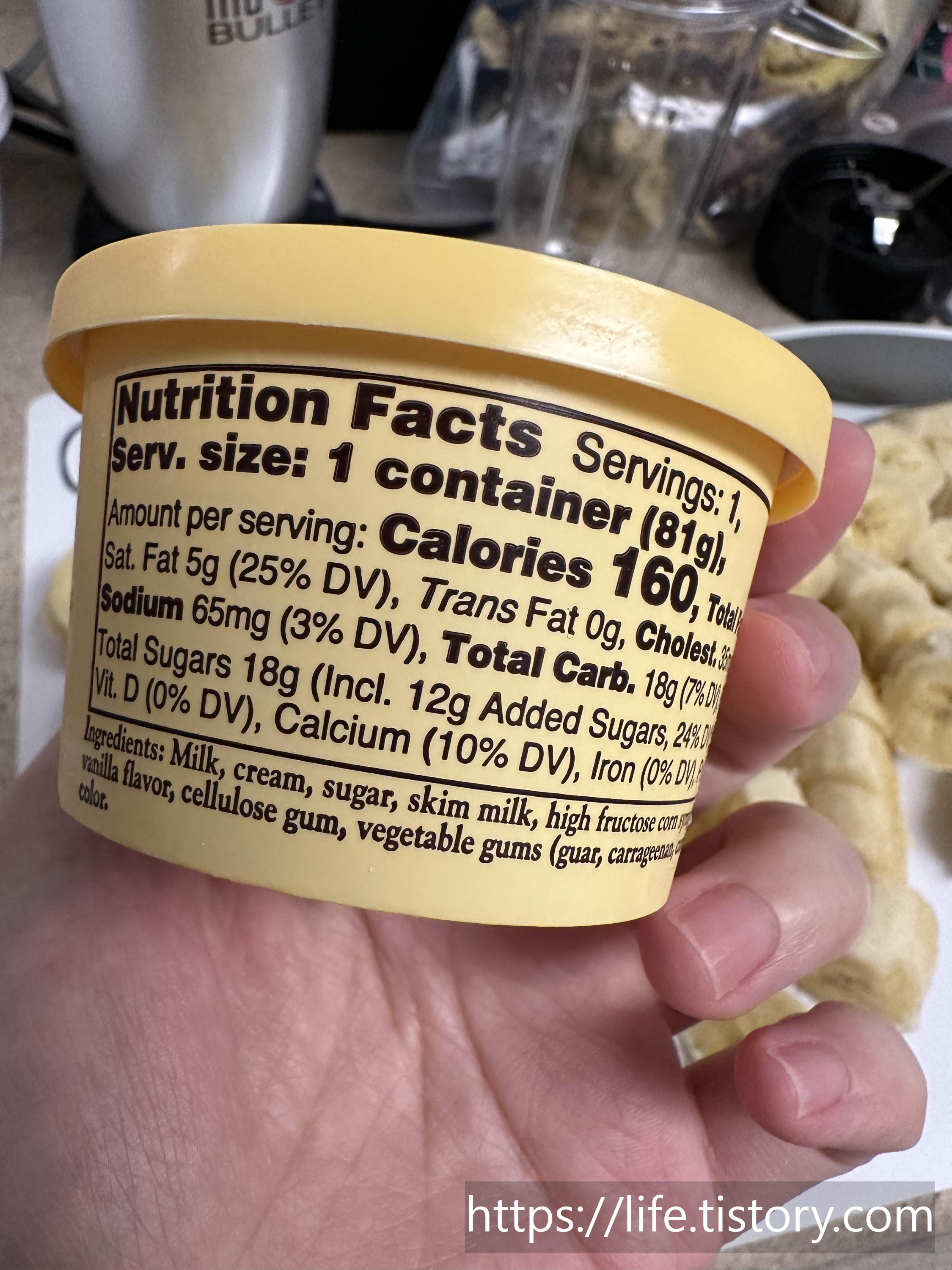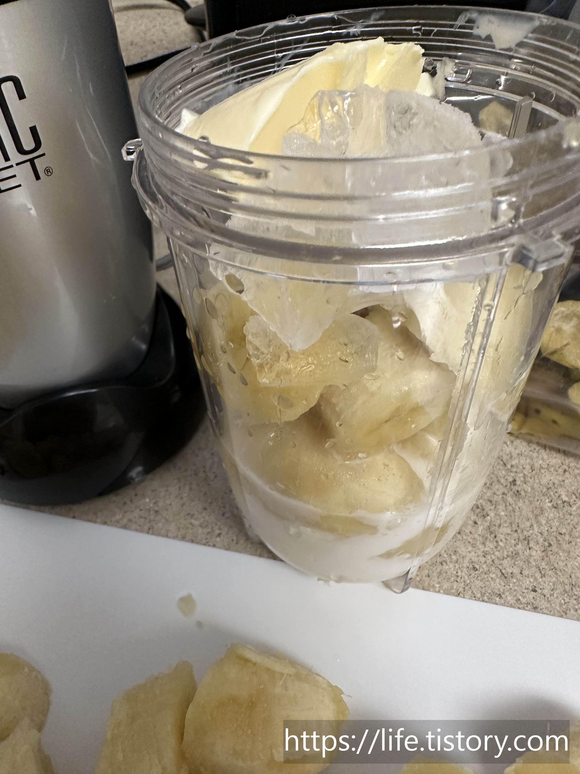 바나나 양이 많아서 총 3번에 걸쳐서 갈고 아이스크림은 작은 사이즈로 한통만 들어갔다.
