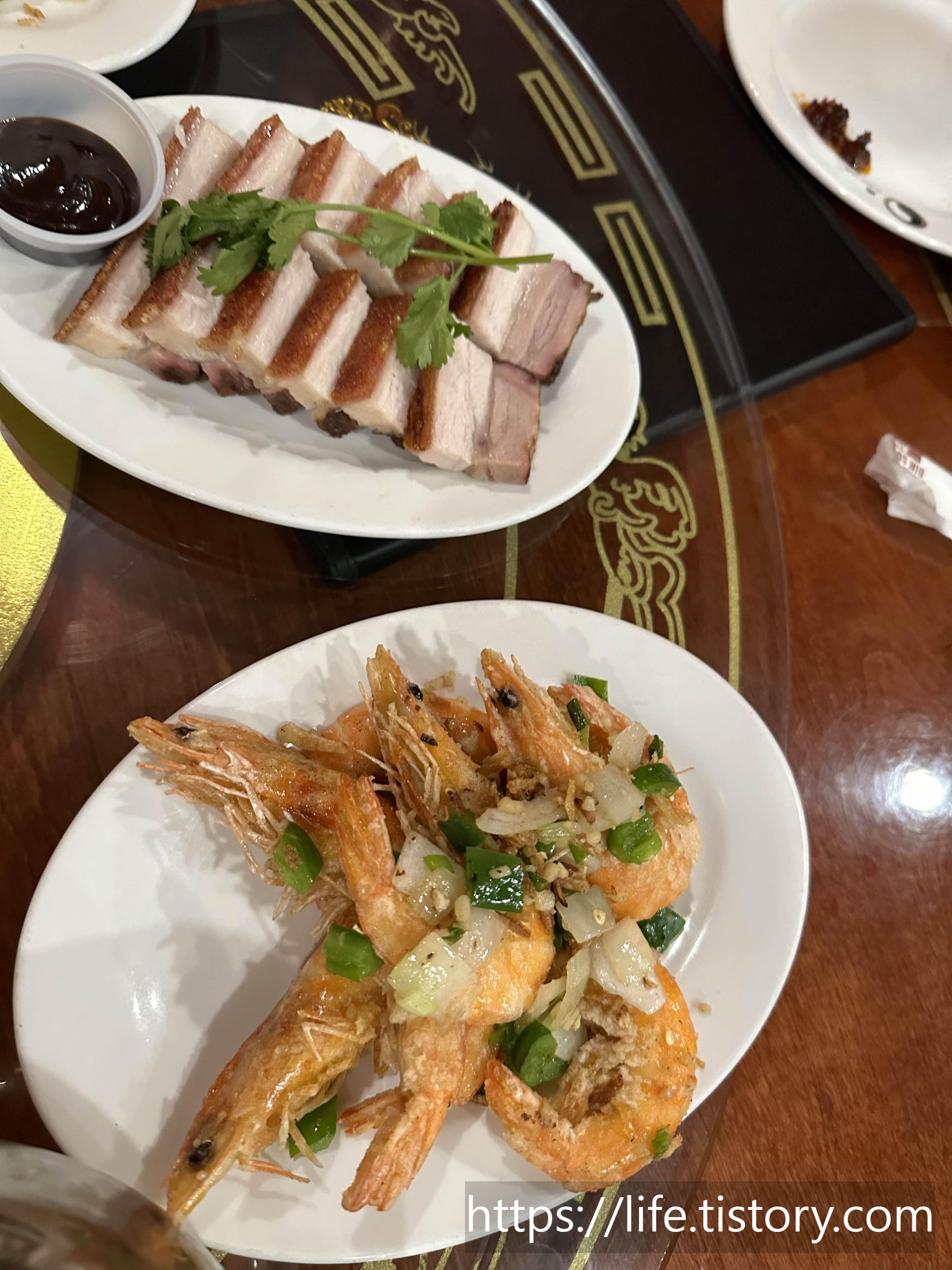우리가 시켰던 건 shrimp rice noodle rolls, shrimp har gow, BBQ Roast Pork Belly, shrimp with spicy salt, Chinesse broccoli 등등이었다. 사진이 많이 없다. 이름이 기억 안 나는 음식도 있고 배가 많이 고팠었나 보다 ㅋ
