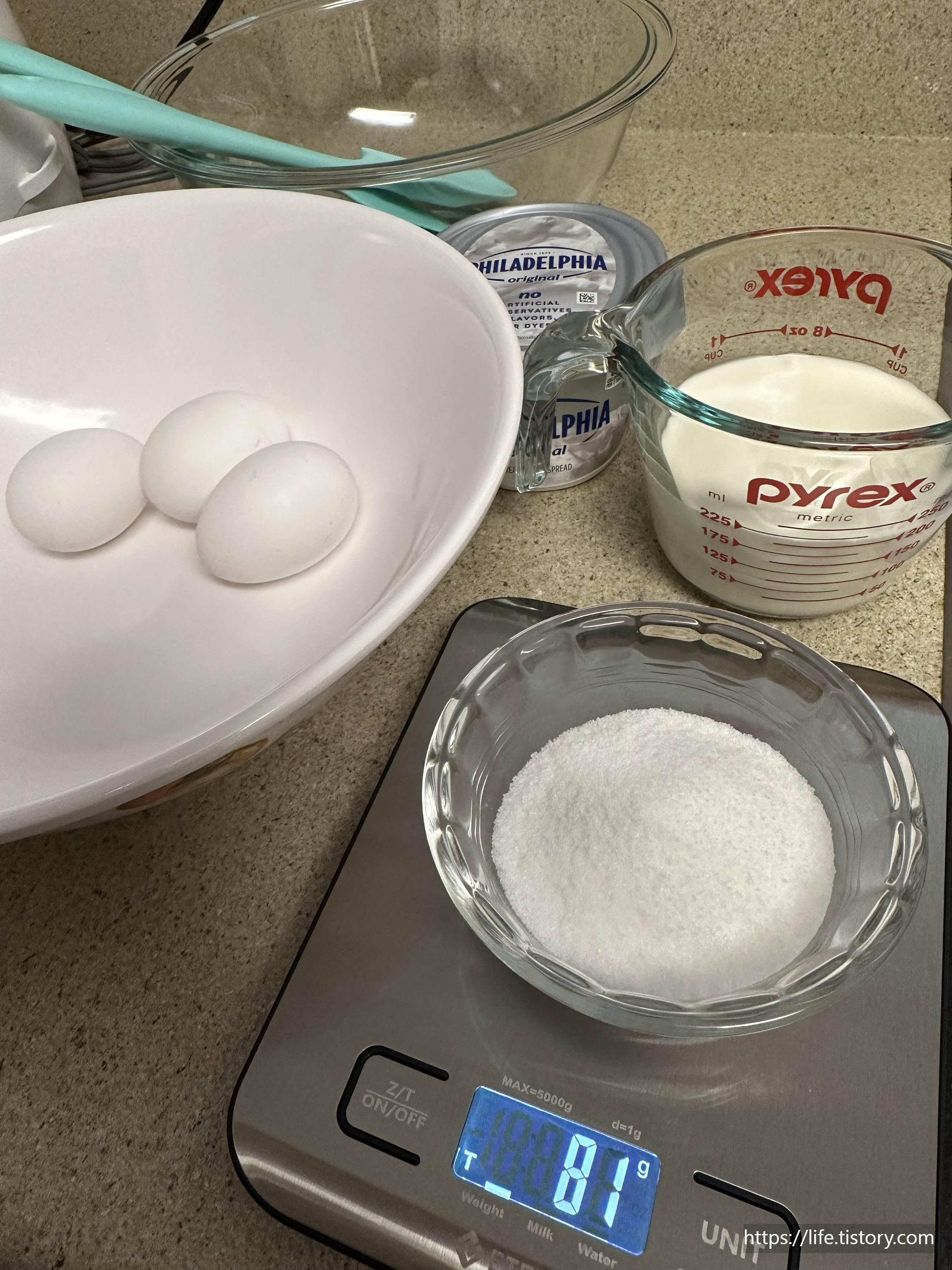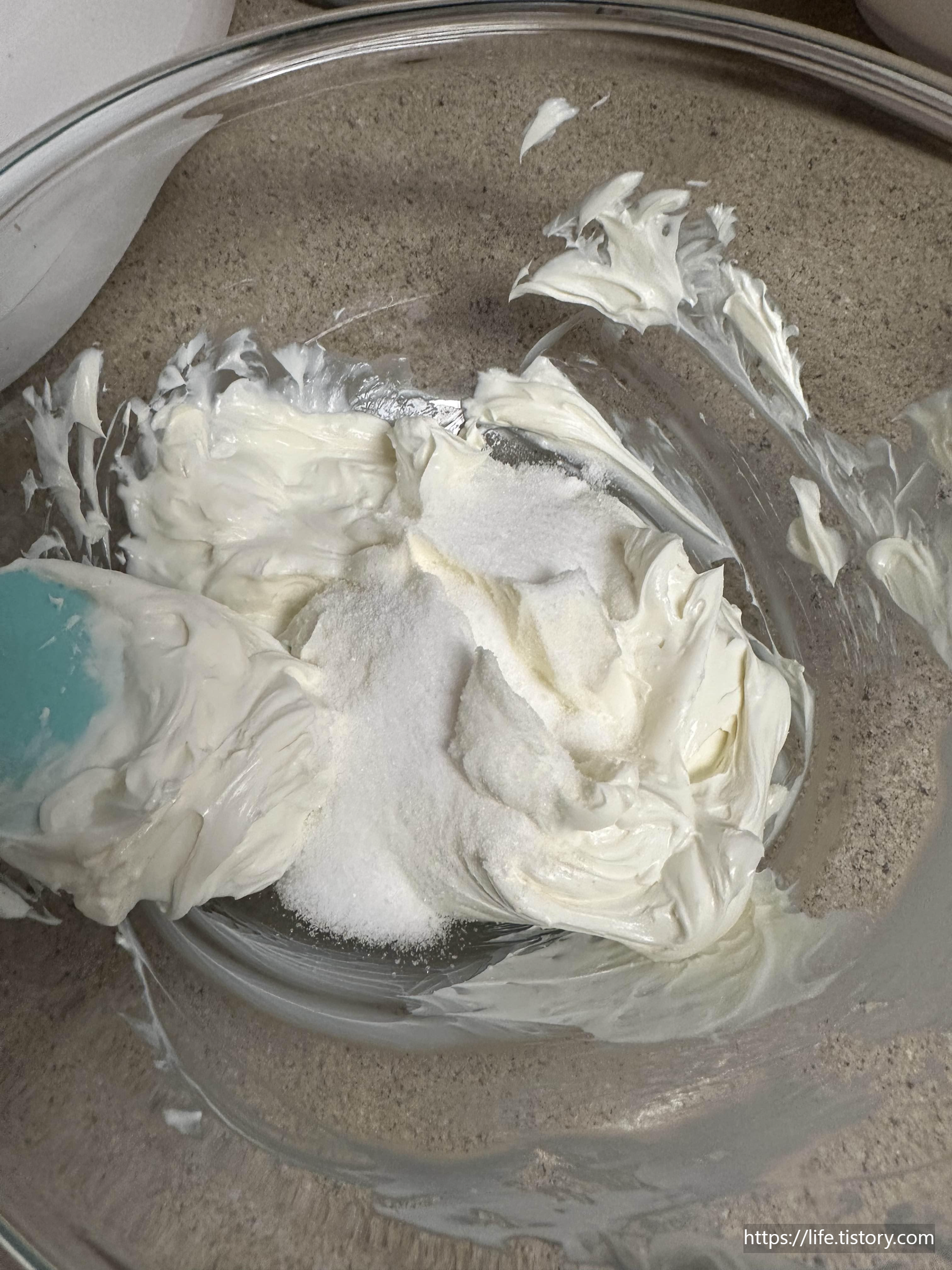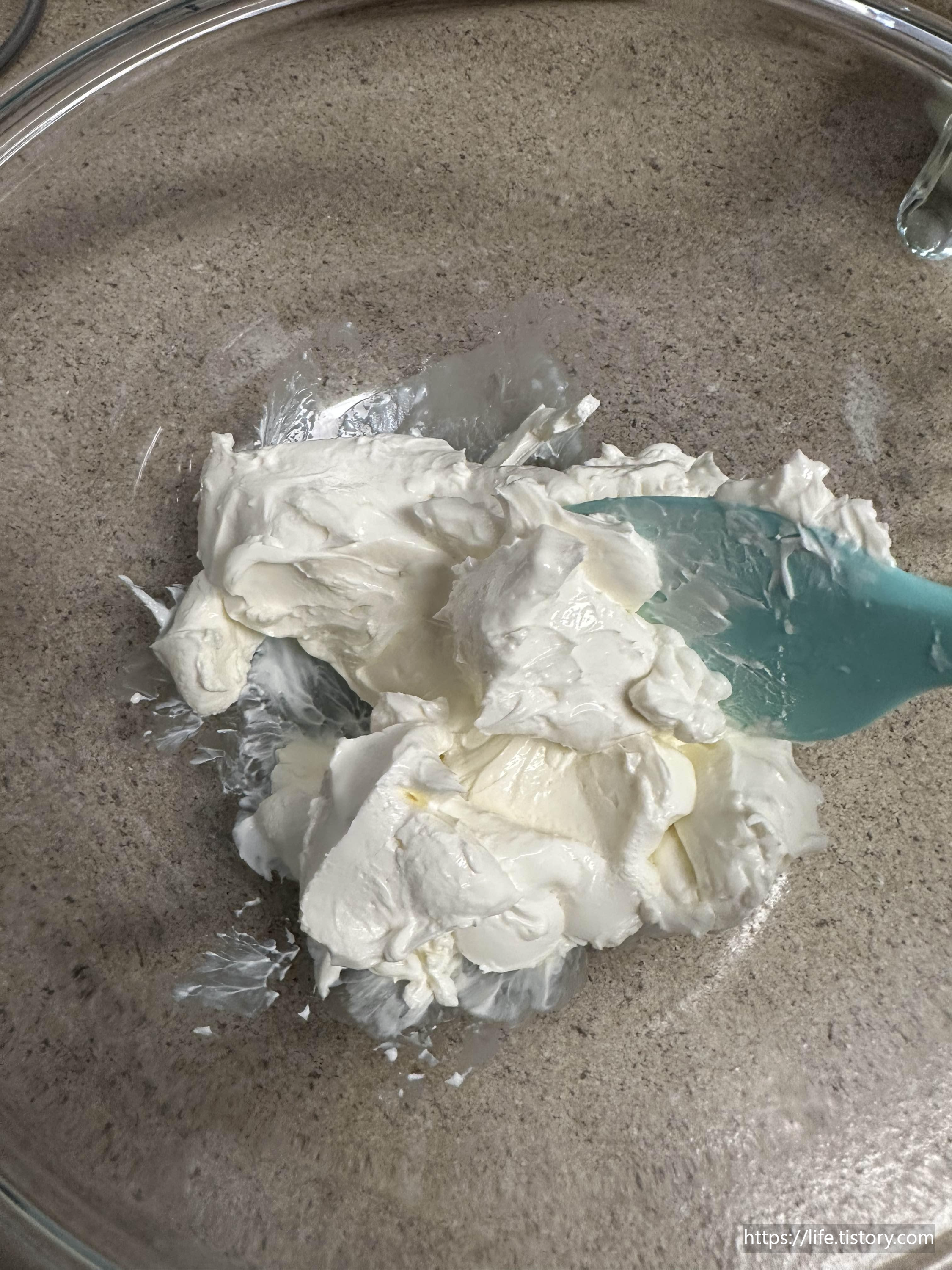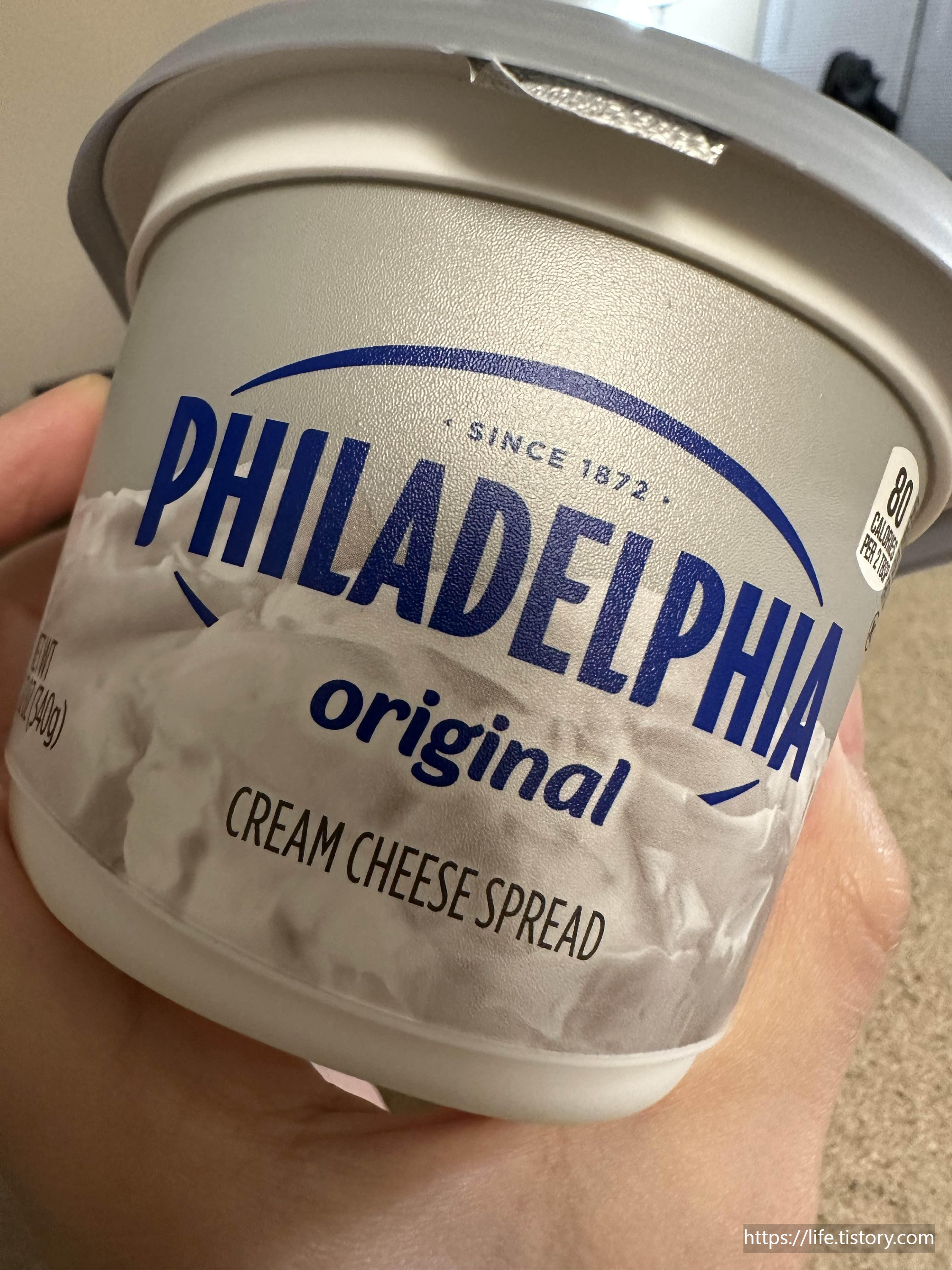 크림치즈는 필라델피아 크림치즈로 샀는데 스프레드라서 괜찮나 했는데 만들고 보니 크게 상관은 없는 것 같다. 어떤 크림치즈를 쓰느냐에 따라서 맛이 많이 바뀔 것 같다.