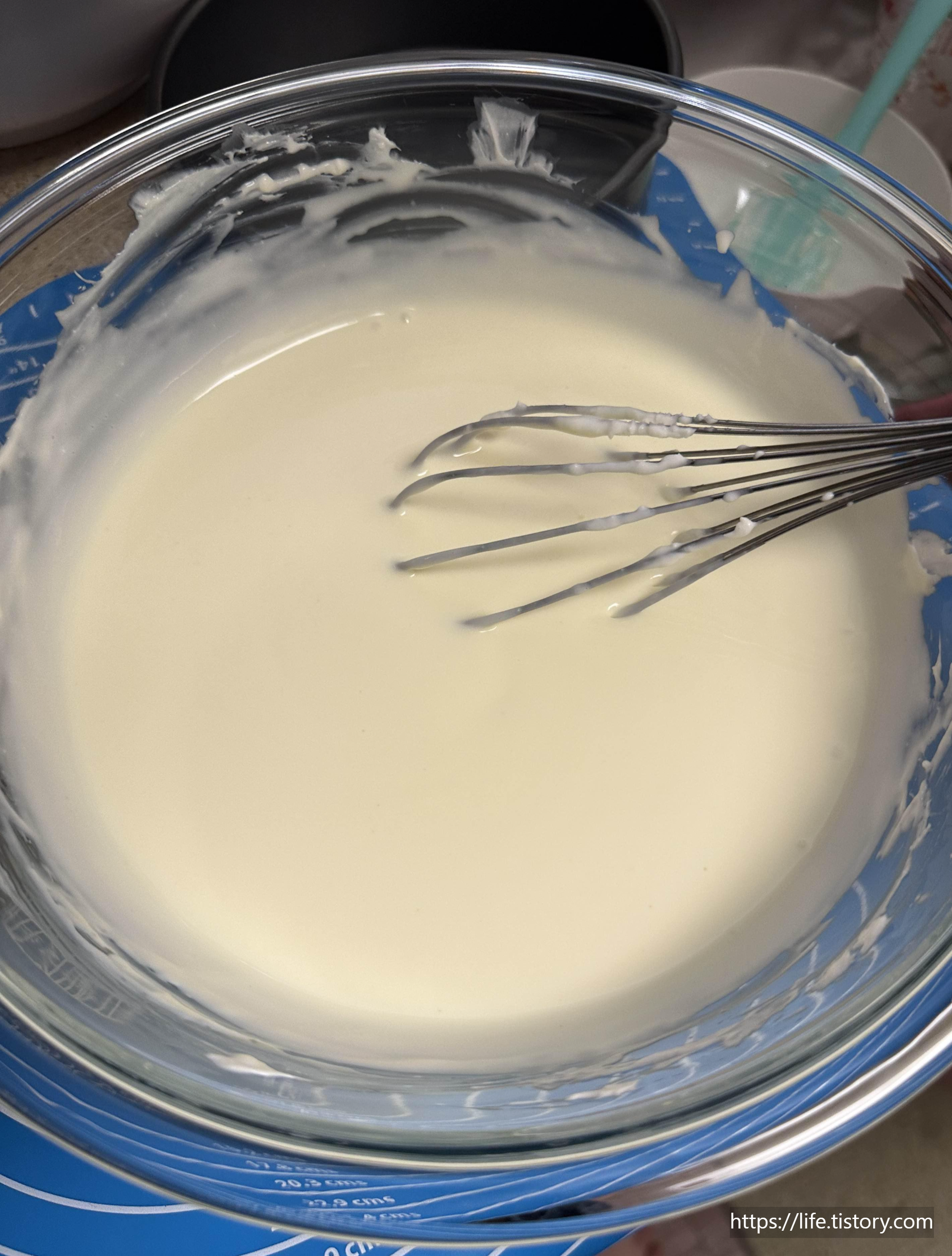 4. 생크림을 조금씩 넣으면서 잘 섞어준다.